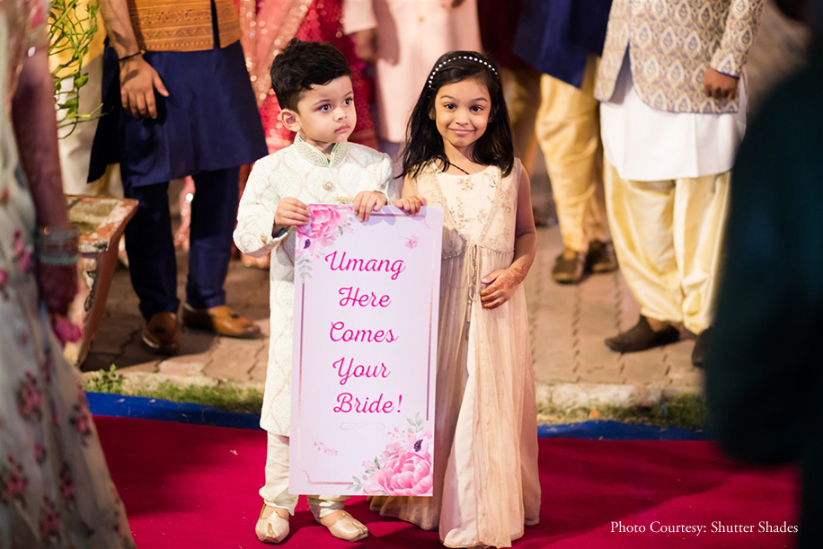 Holding a bouquet of roses, Nikita entered the venue under a beautiful floral canopy. She was escorted by her father. Umang surprised her by singing a romantic number with a special romantic singing performance during her entry.