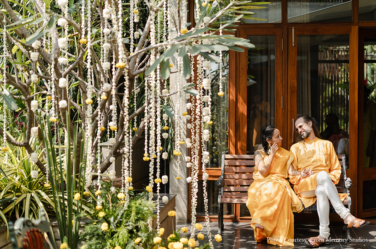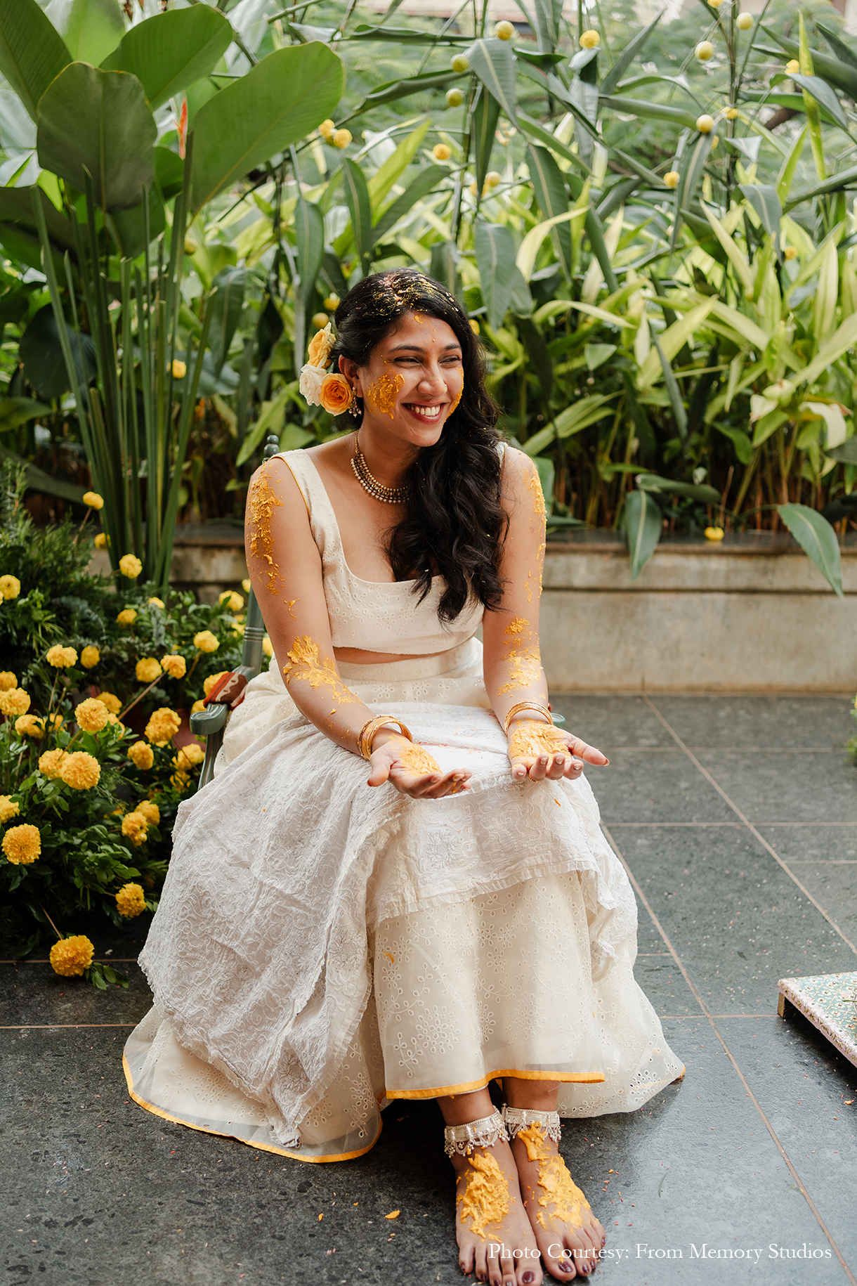 Choosing the quaint boutique venue of Amita Rasa in Bangalore, the couple turned to the team of Best Day Ever by Deepika Shetty for the planning and execution of their wedding. Reflecting on the experience, they share “Our main challenge was orchestrating the perfect decor at Amita Rasa while preserving and enhancing its existing beauty and charm. Team Best Day Ever by Deepika Shetty patiently listened to and incorporated all our very detailed ideas for all the different elements we wanted, including designing things around our desire to incorporate bonsai as table centerpieces. They also advised us on where our vision was falling short, and how it could be elevated with just the smallest touches.”