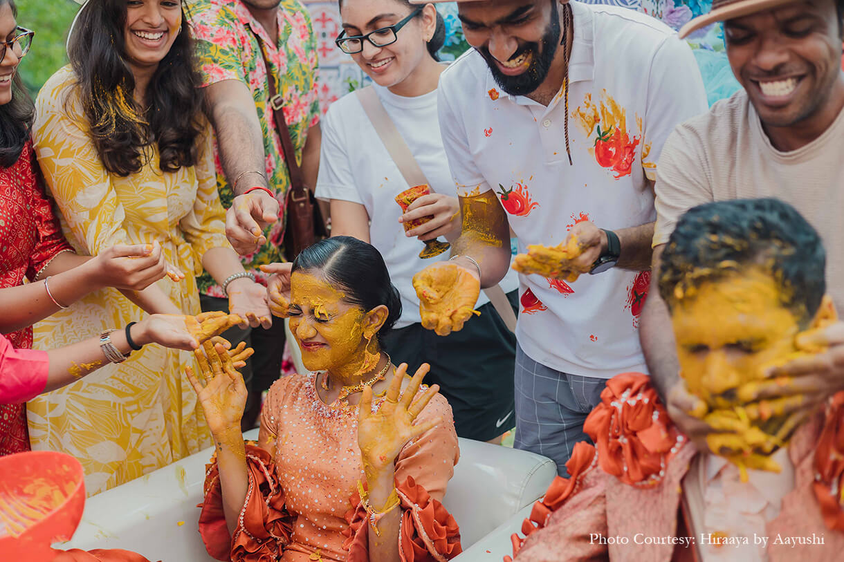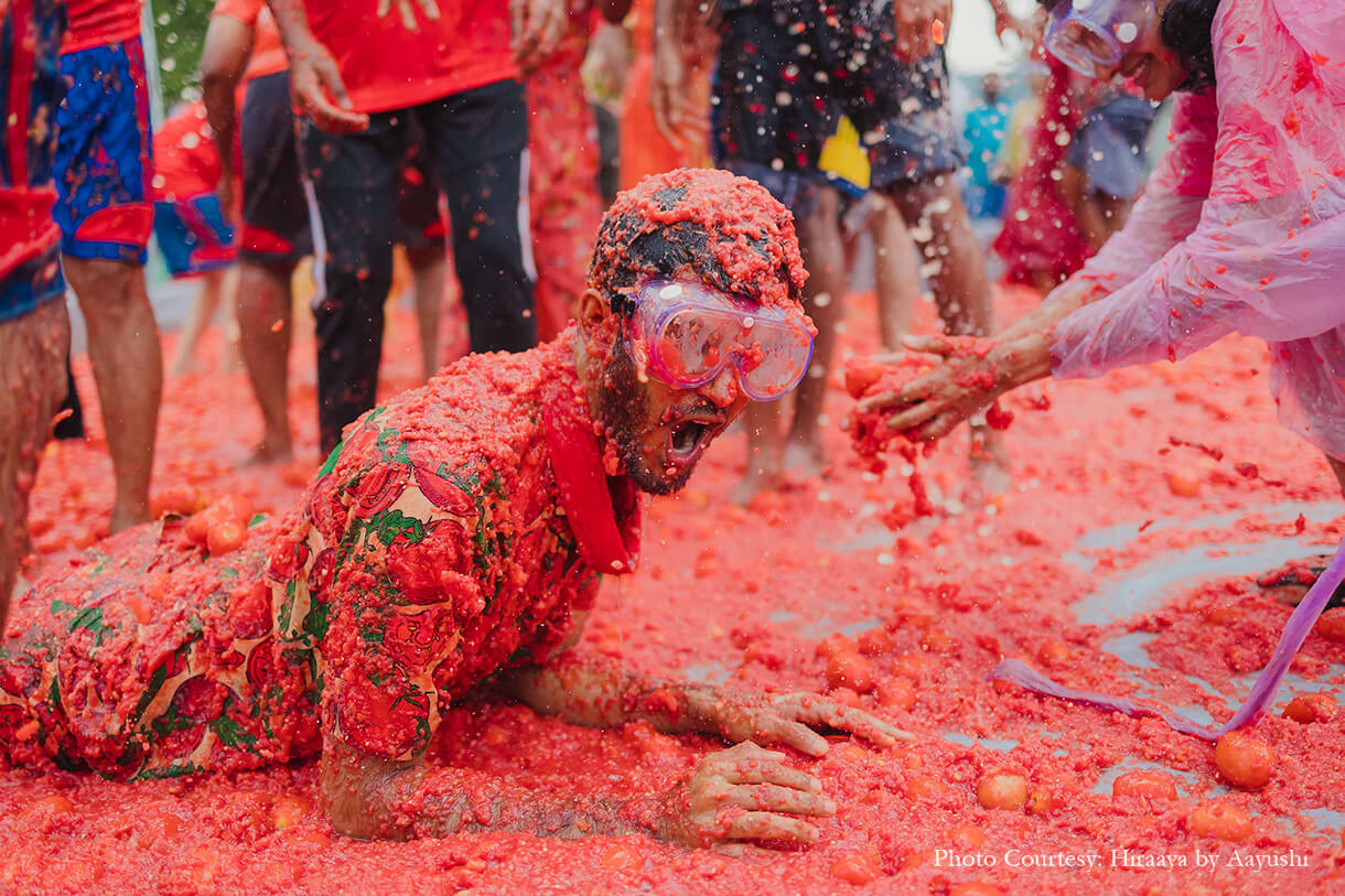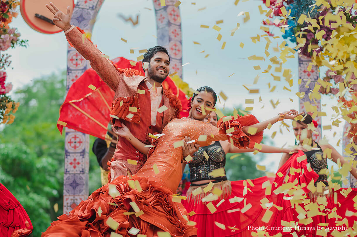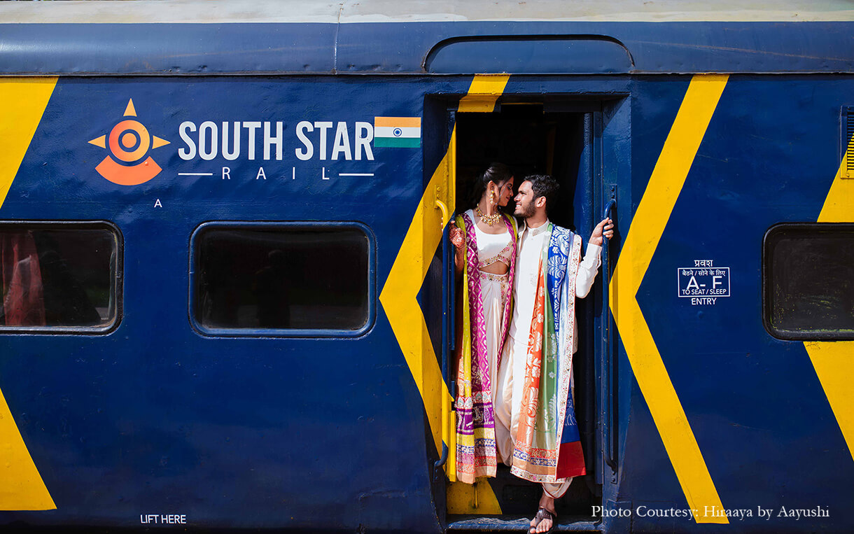 From a Tomatina-themed haldi, a private train party to a traditional temple wedding - this couple embraced their roots and experimented with international themes at their wedding.