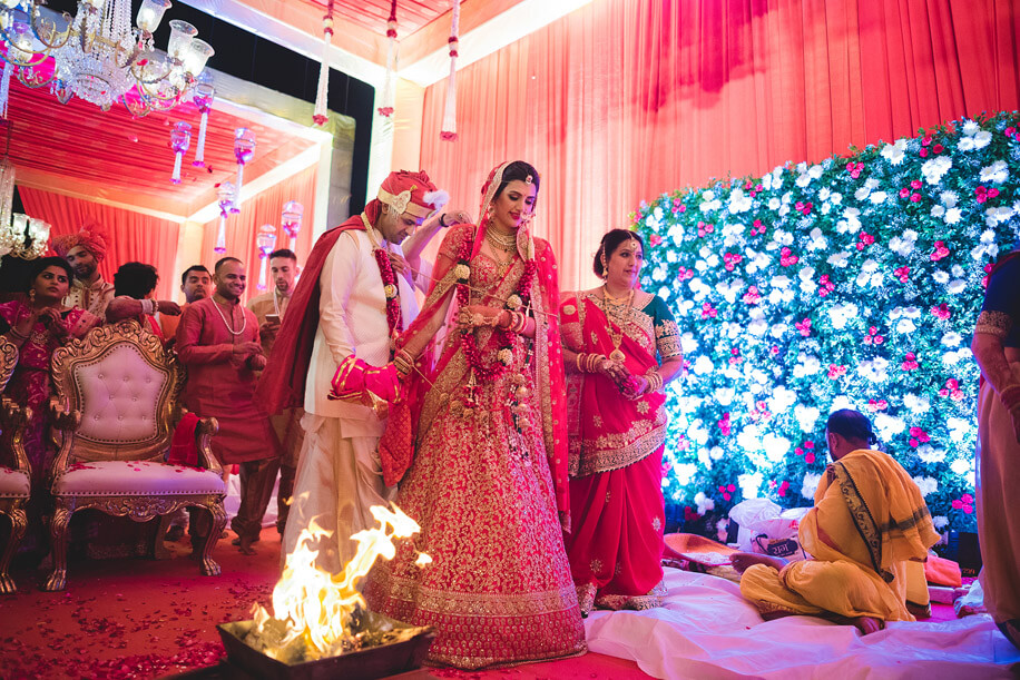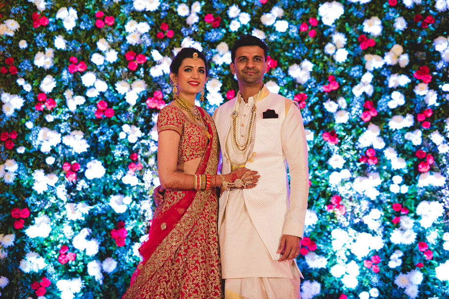 “We wanted a Gujarati garba-themed vibe for the sangeet. We used all kind of colors like green, blue, and red to light up the place. We hired Atul Purohit, a famous singer, for the event which had 400 people dancing at the same time!”