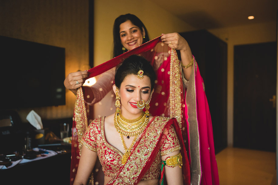 “All my wedding shopping was done in Mumbai as I was very familiar with the city’s designers and jewellery stores since I had studied there for seven years. For the mehndi, I wore an Aastha Narang outfit paired with Aquamarine Jewels. I opted for a Punit Balana ensemble and Just Jewellery bling for the sangeet. I went with red and gold lehenga by Sabyasachi Mukherjee for the wedding, and matched it with traditional gold jewellery from CH Jewellers and DP Jewellers from Udaipur. For the Reception, I chose a creation from Varun Bahl’s 2016 Runway Show Collection from AZA Fashions and a diamond necklace from CH Jewellers.”