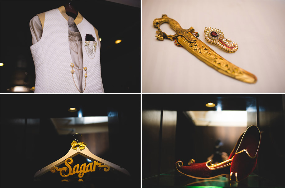 Sagar wore an elaborate white and light gold dhoti-jacket set with ethnic ‘mojris’ (shoes) and necklaces.