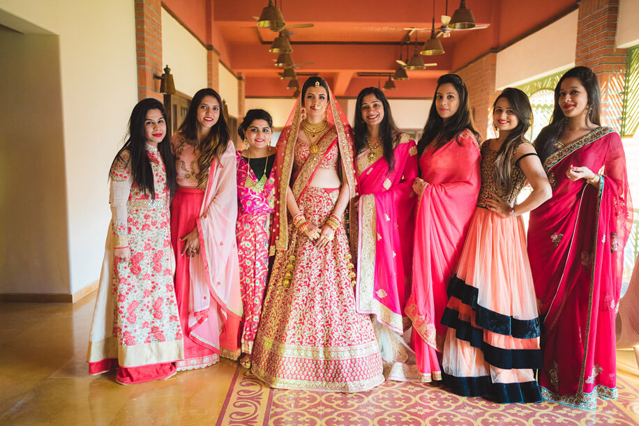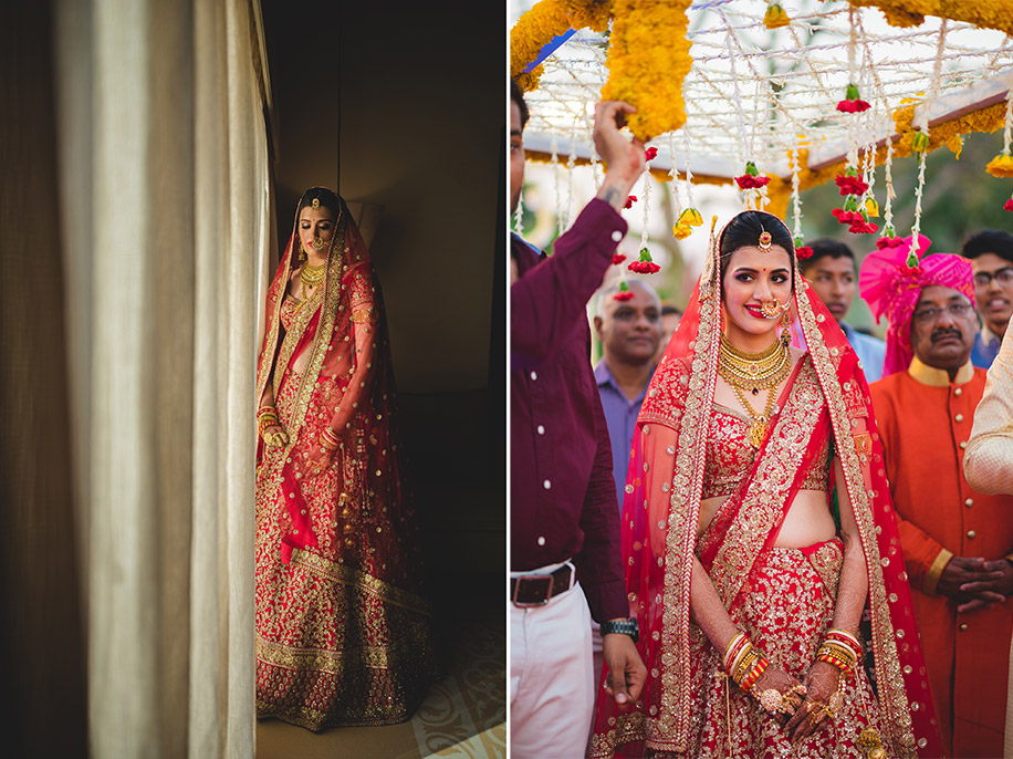 Bridal Trousseau: Aastha Narang (Mehndi), Punit Balana (Sangeet), Sabyasachi Mukherjee (Wedding), Varun Bahl from Aza Fashions (Reception)