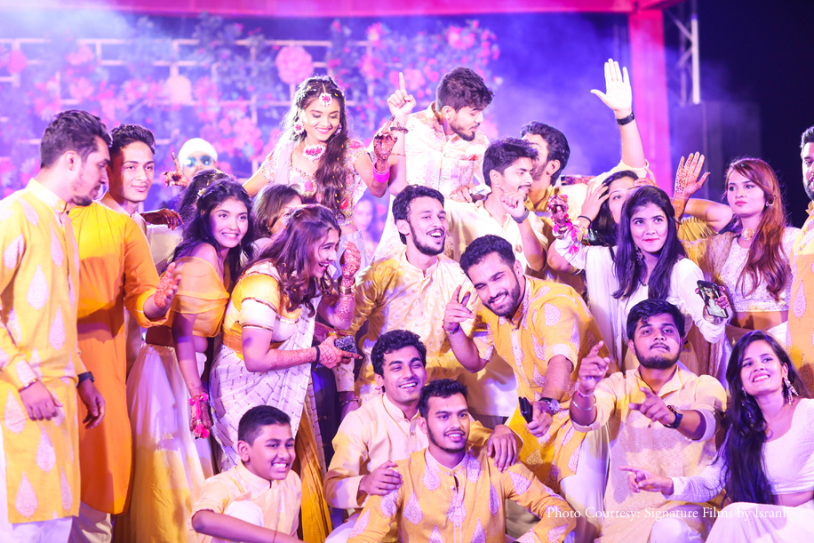 The enthusiasm for the wedding was sky-high, and the couple’s loved ones wanted to host many festivities with a different flow. To turn their dreams into a reality, they entrusted the events to Swaaha Wedding Management Company, who planned the celebrations for six months and pulled them off flawlessly. The beautiful decor for the functions was done by DreamzKrraft, while all the grand festivities were