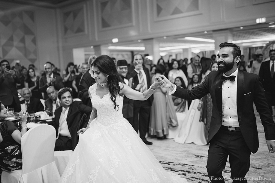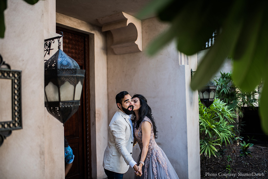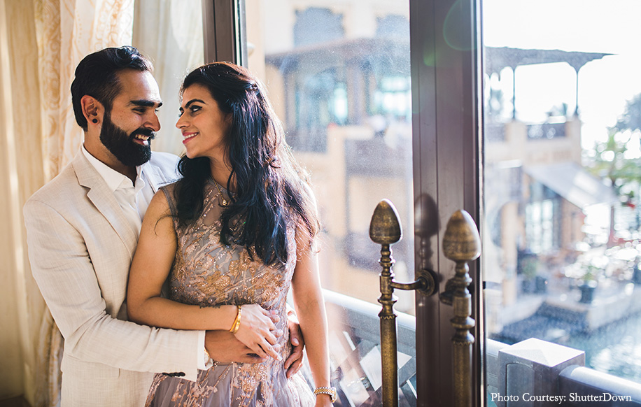 Pankhuri describes Nikhil as the ‘life of the party,’ and the pictures of their nuptials at Madinat Jumeirah, Dubai clicked by WeddingSutra Favorite – Shutterdown show how right she is! He is captured winking at the camera, pulling a relative’s nose, dancing with his bride, making funny faces and thoroughly enjoying the functions. The happy bride shares how they met and highlights of their wedding celebrations here.