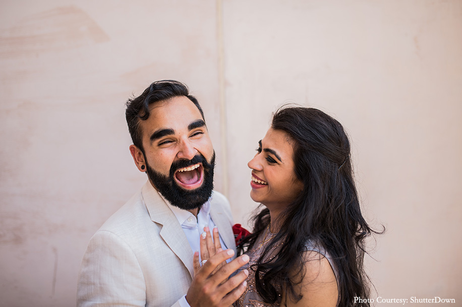 “On New Year’s Eve in 2016, we got together as he had thrown a party for friends and family. At midnight he said he wanted to talk to me about something. He took me outside, and when I looked down, I saw the entire ground terrace was lit with candles. I heard Nikhil saying, “Be mine” – and then he went down on one knee and offered me the ring. I wasn’t expecting the proposal that night and was genuinely shocked.”