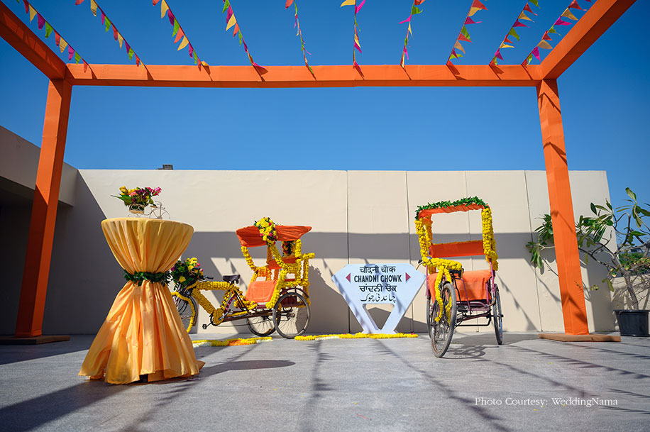 Keeping in mind that many people from the groom’s side were flying in from Israel, the duo decided to give their international guests a taste of Delhi by arranging a spread that served favorite local treats. Reflecting the food, the decor was also designed around ‘Dilli – 6’ with signboards inspired from old Delhi, and the guests were picked up and dropped by a rickshaw from the entry point to the venue.
