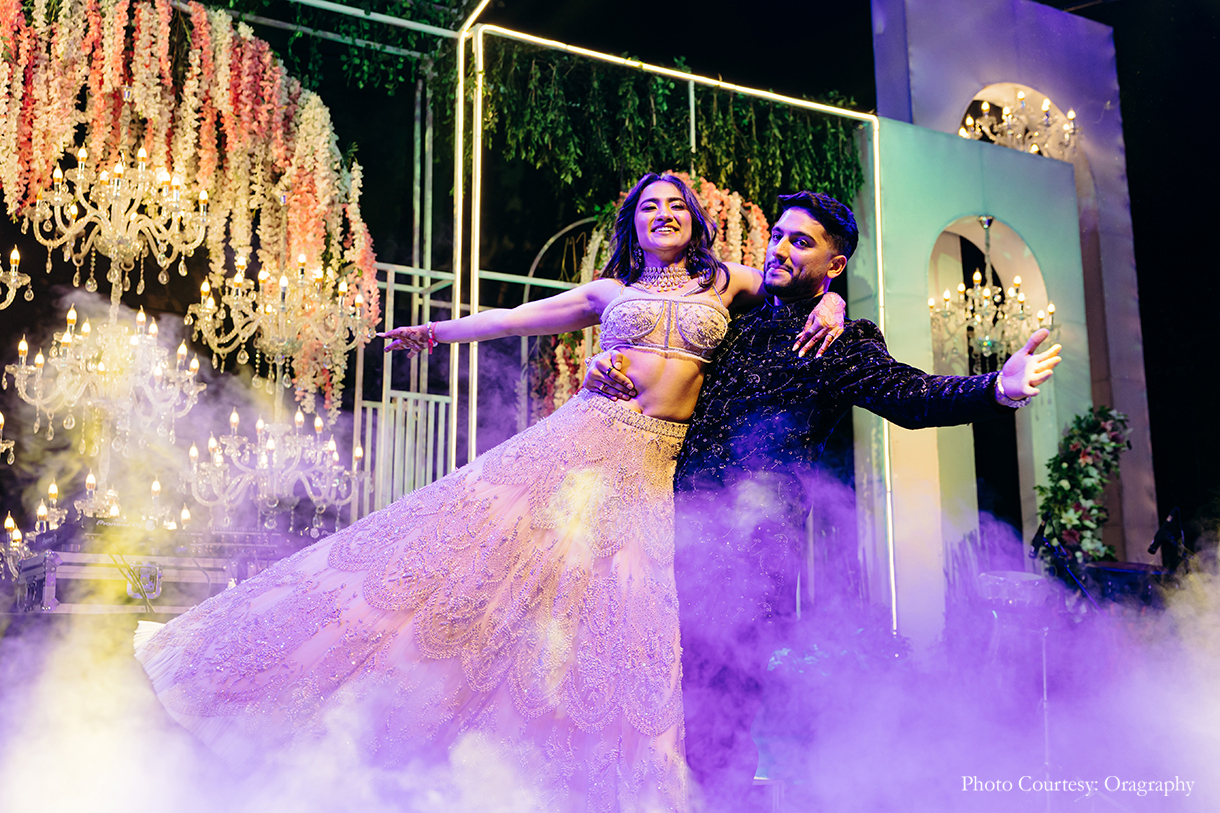 Drenched in glamour and sparkle, the sangeet was an unforgettable celebration. From cascading wine glass towers and statement chandeliers to heart-thumping dance performances, every frame shimmered with joy and energy.