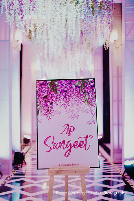 Fusing subtle glamour with elegance, the duo chose a silver and purple palette for the sangeet. The decor comprised profusions of delicate blooms that adorned the stage and the entranceway. With energetic performances by family members and friends, the evening was packed with laughter and joy.