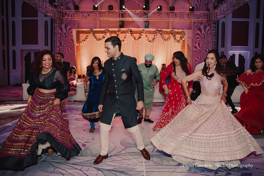 Groom’s Outfits: Suhail Hafeez (Mehndi), Dhruv Sehgal (Sangeet), Puneet and Nidhi (Wedding), Collar and Cuff (Reception)