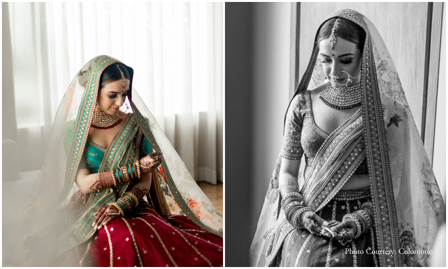 Bride’s Outfits: Petalz Couturee by Jaya Lakhwani (Mehendi), Anita Dongre (Bride and Groom Ghari), Riddhi Mehra (Welcome Dinner), Sabyasachi (Wedding), Gaurav Gupta (Reception)