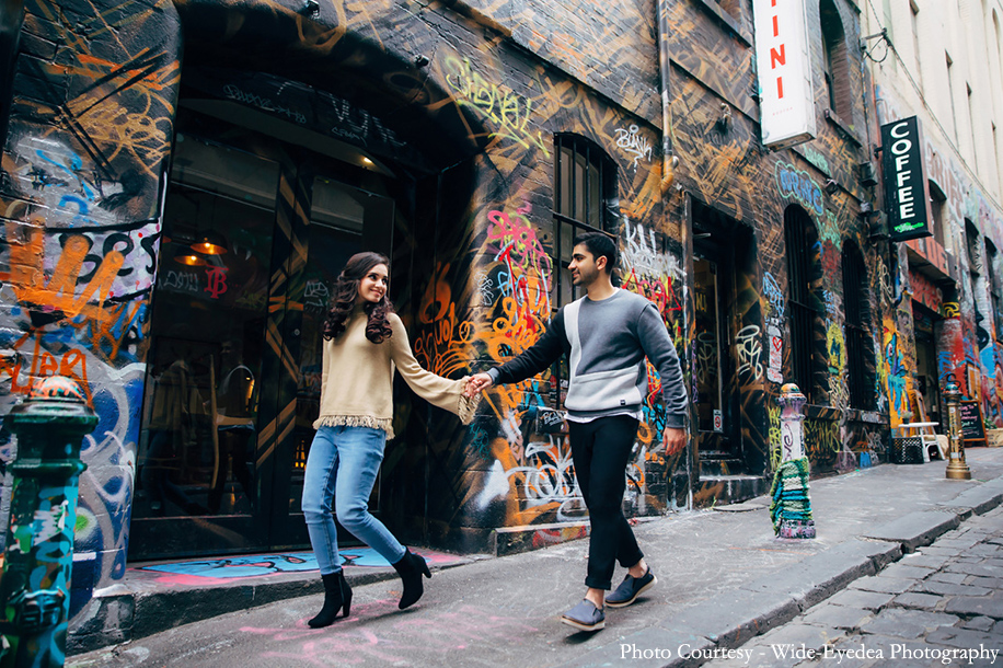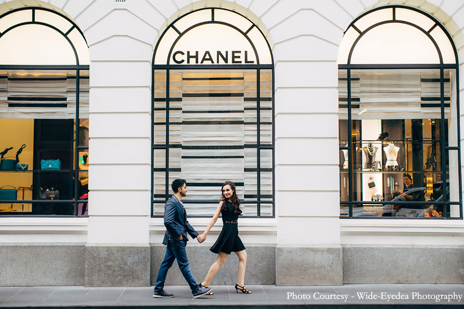 “Yogesh’s family took me to Perth for his cousin’s wedding. We were out on Cottesloe Beach enjoying the view when he proposed. It was natural, simple and minimalist. Just us in our jackets and sneakers. We later took some photos on his phone and everything felt perfect.”