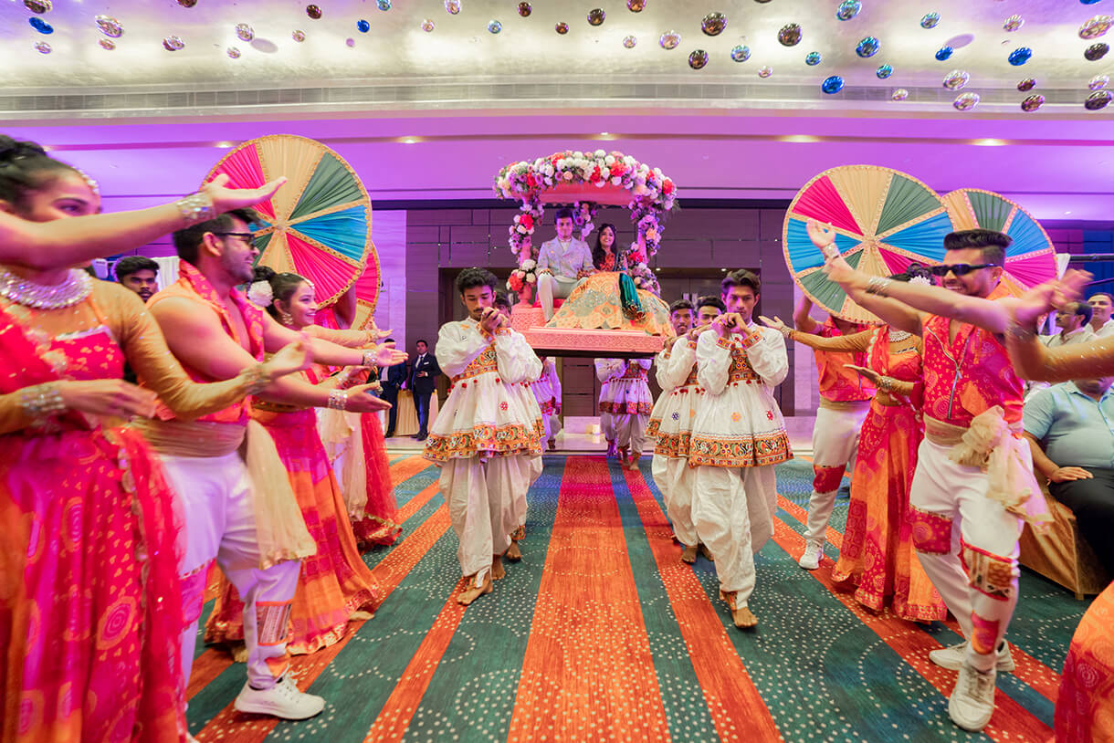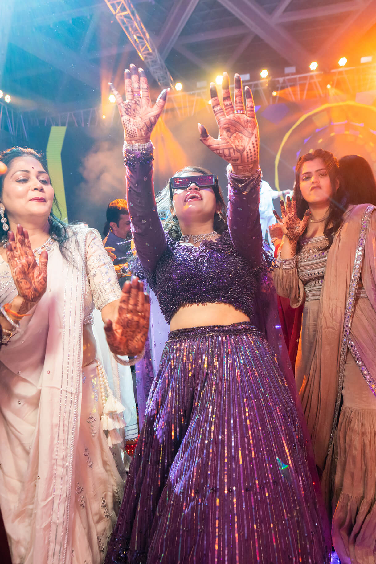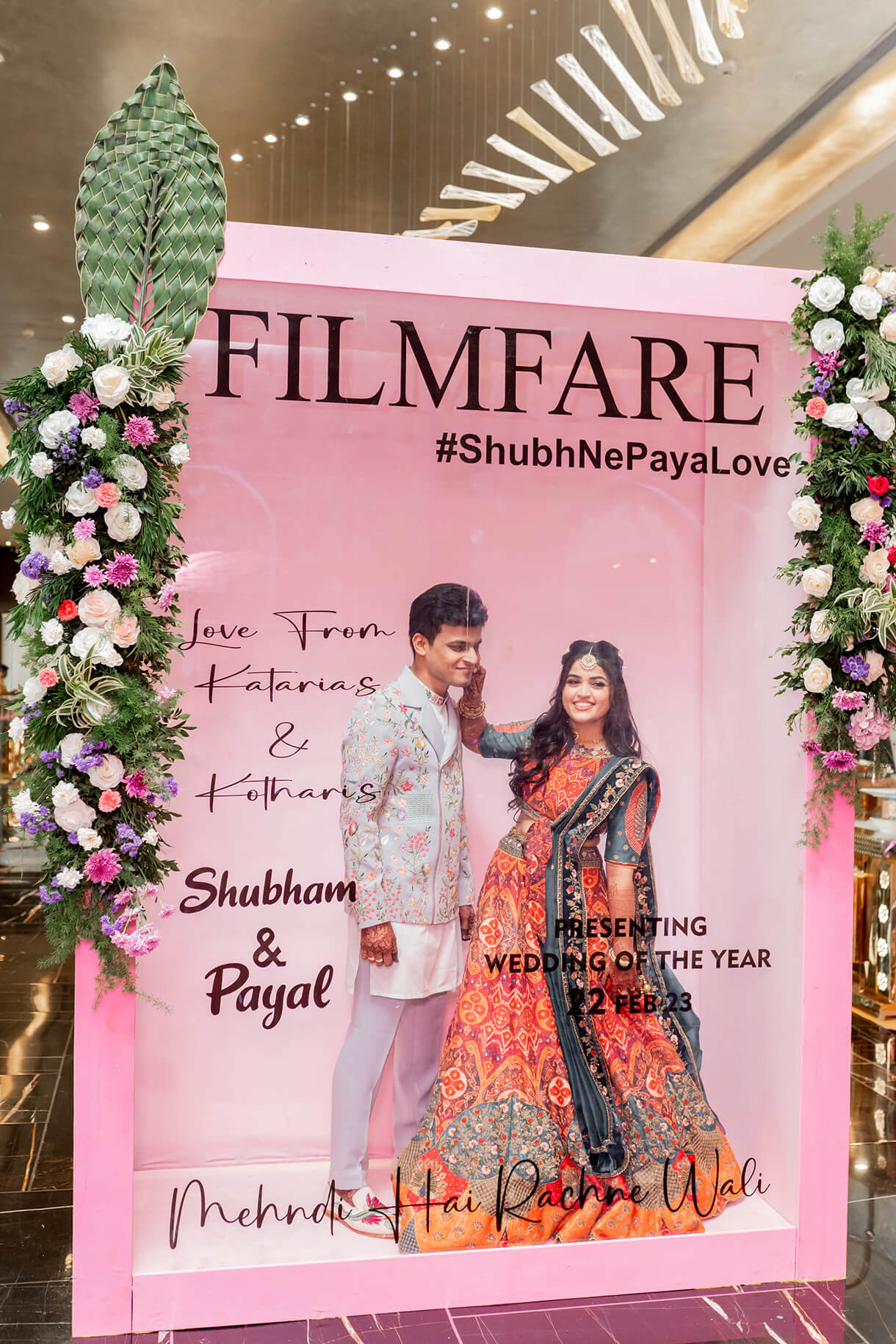 Reetu Jain from The Weddingwale shares, “Payal and Shubham’s wedding came right after two family weddings. They wanted their wedding to feel different and exciting for their guests, with cool modern vibes mixed with a touch of tradition. Since it was the last family wedding in a long time, they decided to go all out, trying new themes, fun entertainment, stylish décor, and impressive entries to make it a truly unforgettable experience for everyone.” Bride Payal shares, “The Weddingwale team made our special day so beautiful! From keeping in mind things specific to us, things we love to giving us the best execution from their end – everything was great. Our love couldn’t have had a better portrayal. People are still talking about the flamboyance this wedding had and it only brings happiness every time it’s mentioned. The morning welcome had so much elegance, the mehendi decor was surreal, the sangeet was energetic, haldi was epic fun, the varmala & reception were like a dream, and the Humsafar song that the team had Akhil Sachdeva perform for us was so touching!
