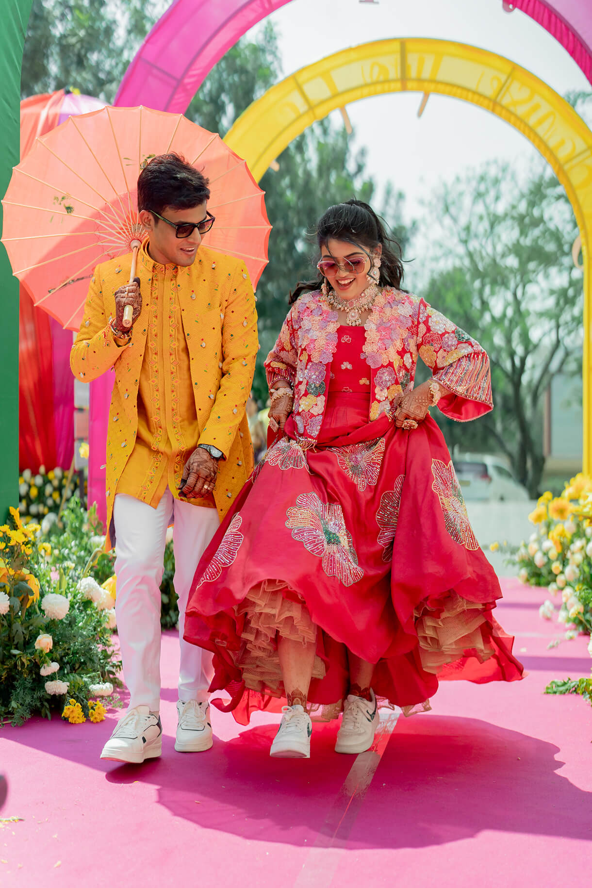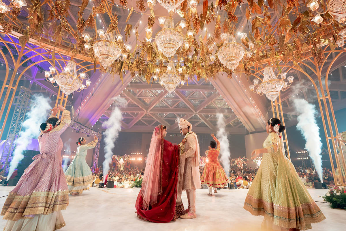 Modern grandeur fused seamlessly with tradition, at this couple's with its Gucci-inspired sangeet, sporty haldi and an innovative wedding ceremony.