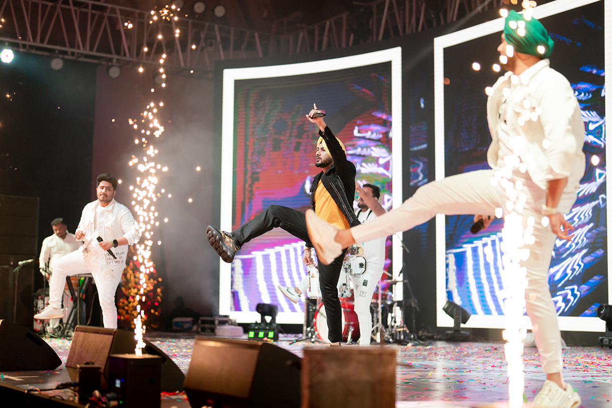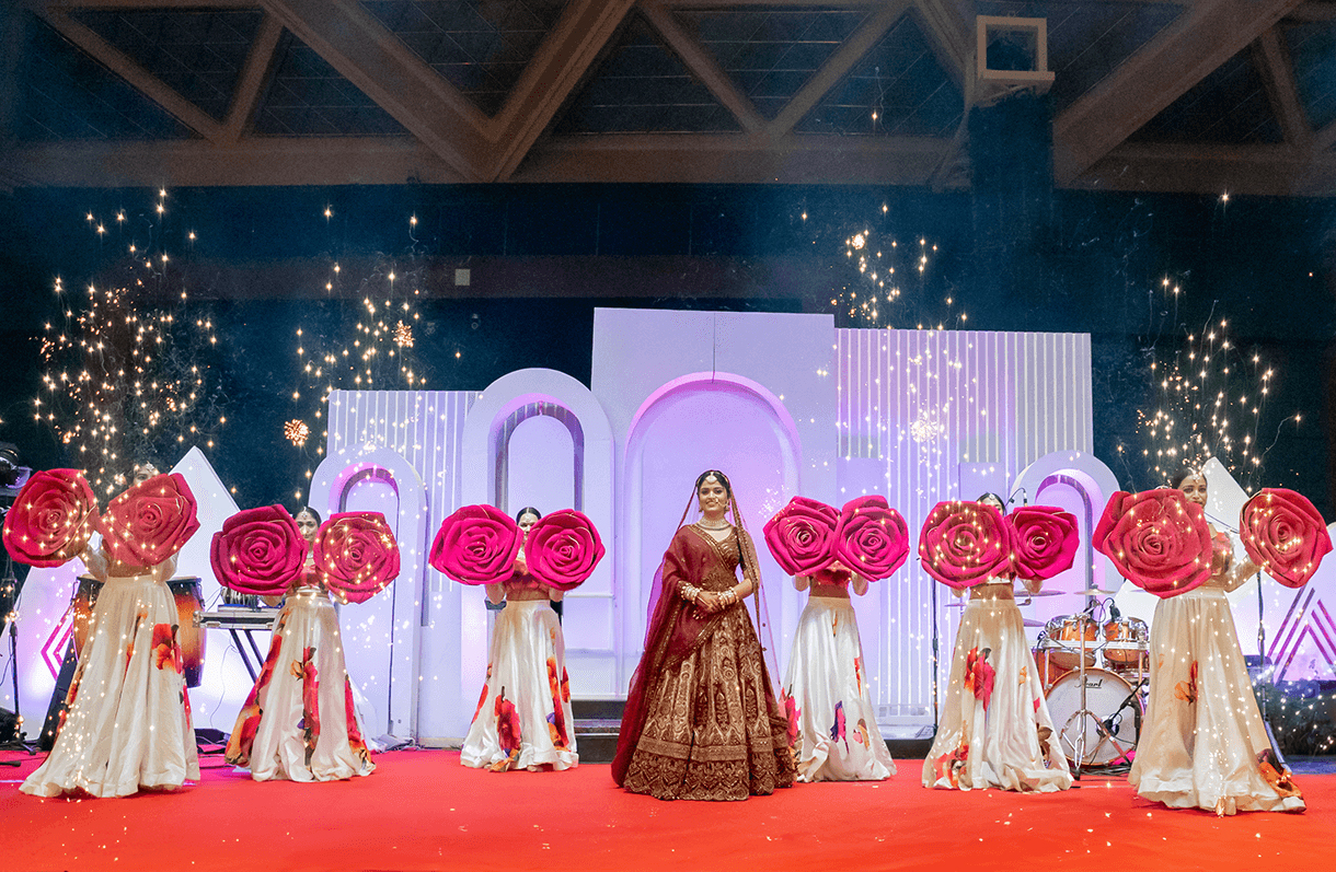 Reetu shares, “The varmala was an innovative ceremony with a grand entrance for the groom on hydraulic stairs, projection mapping on Panchtatva (The Five Elements of Life), and a surprise bride reveal with a curtain drop, the event was truly mesmerizing! Graceful dancers added to the ambience, leading up to a beautiful varmala exchange, creating unforgettable moments. Planned with advanced technology and precise execution, the varmala left everyone in awe, setting a new benchmark for creativity.”