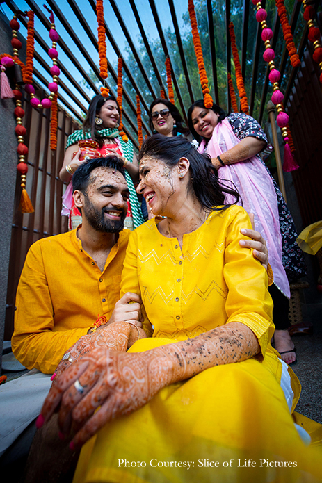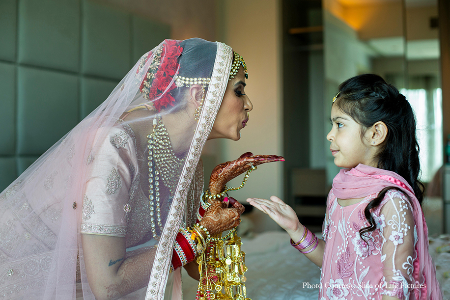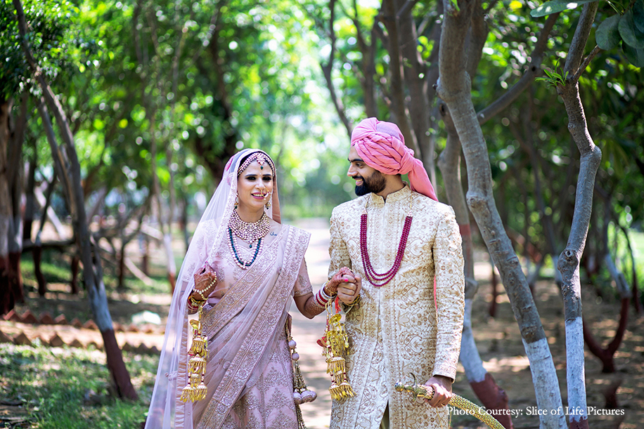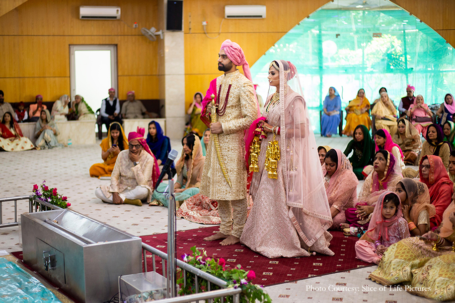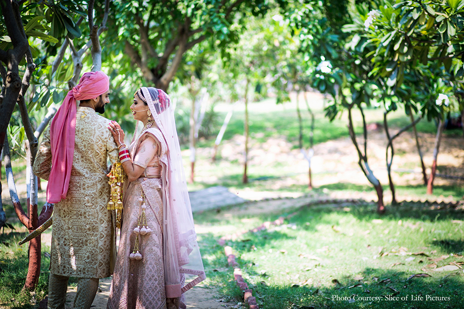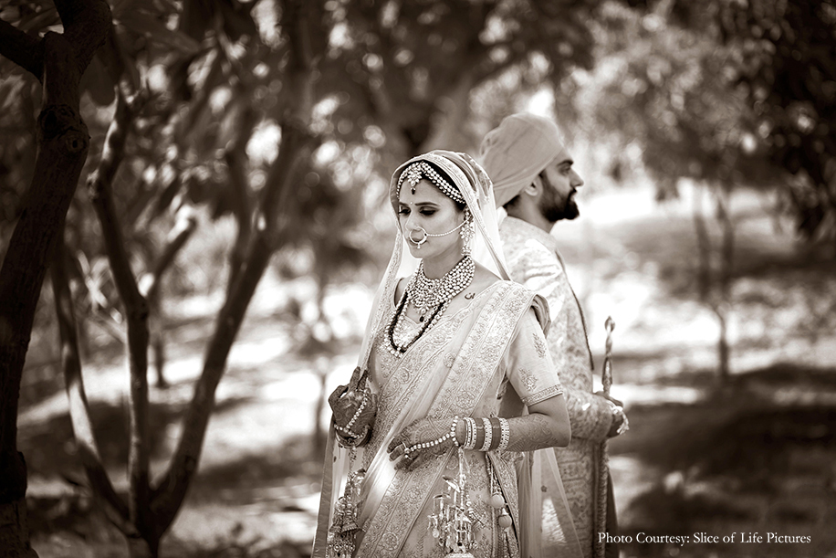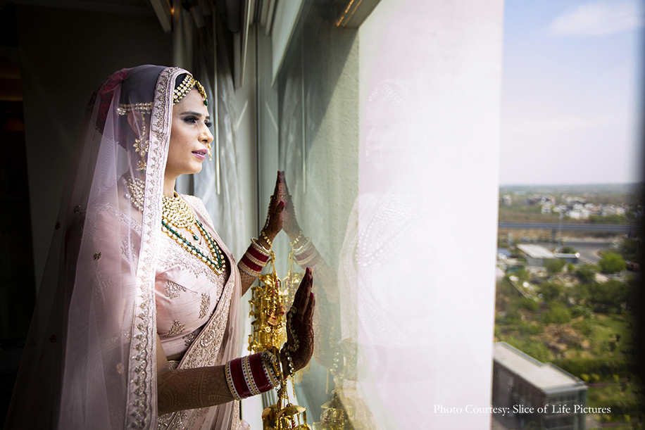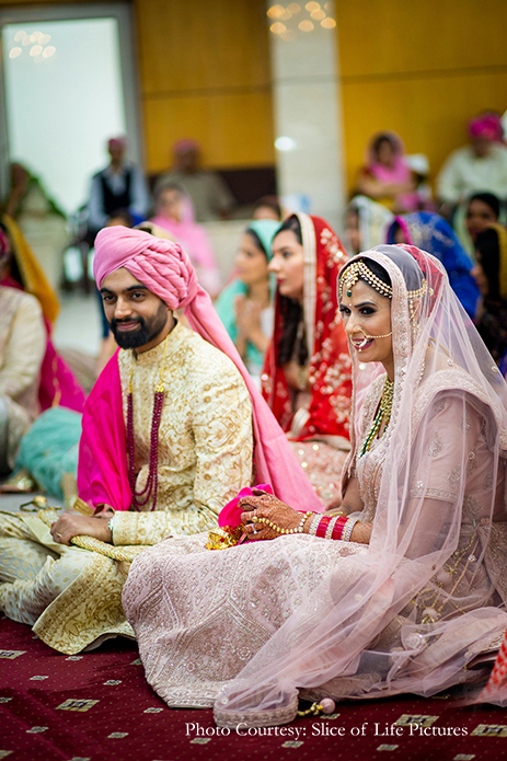Shot by WeddingSutra Favorite – Slice of Life Pictures, Perminder and Anirudh’s wedding was a simple, elegant ceremony planned and executed by the couple themselves. Subtle colors, traditional motifs and decor perfectly enhanced the warm emotions radiating brightly through their wedding pictures. Read on to know how it all happened.