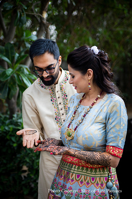 Anirudh moved back to India after 26 years and happened to start work at Perminder’s office. Their instant friendship was a natural segue into him asking for some style advice from her. Perminder offered to help him pick outfits for a wedding he had to attend in Bali. As they went shopping, their time spent together suddenly included dinner and lunch dates. Before they knew it, they were madly in love. The rest is history.
