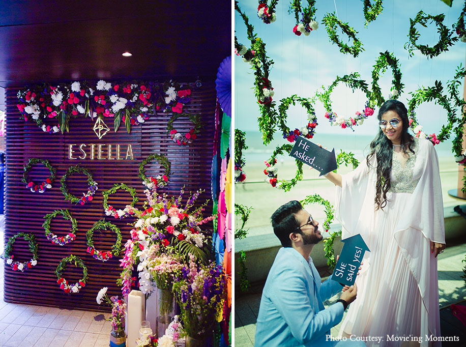 The wedding festivities kickstarted with a whimsical cocktail soirée at Estella, Juhu.