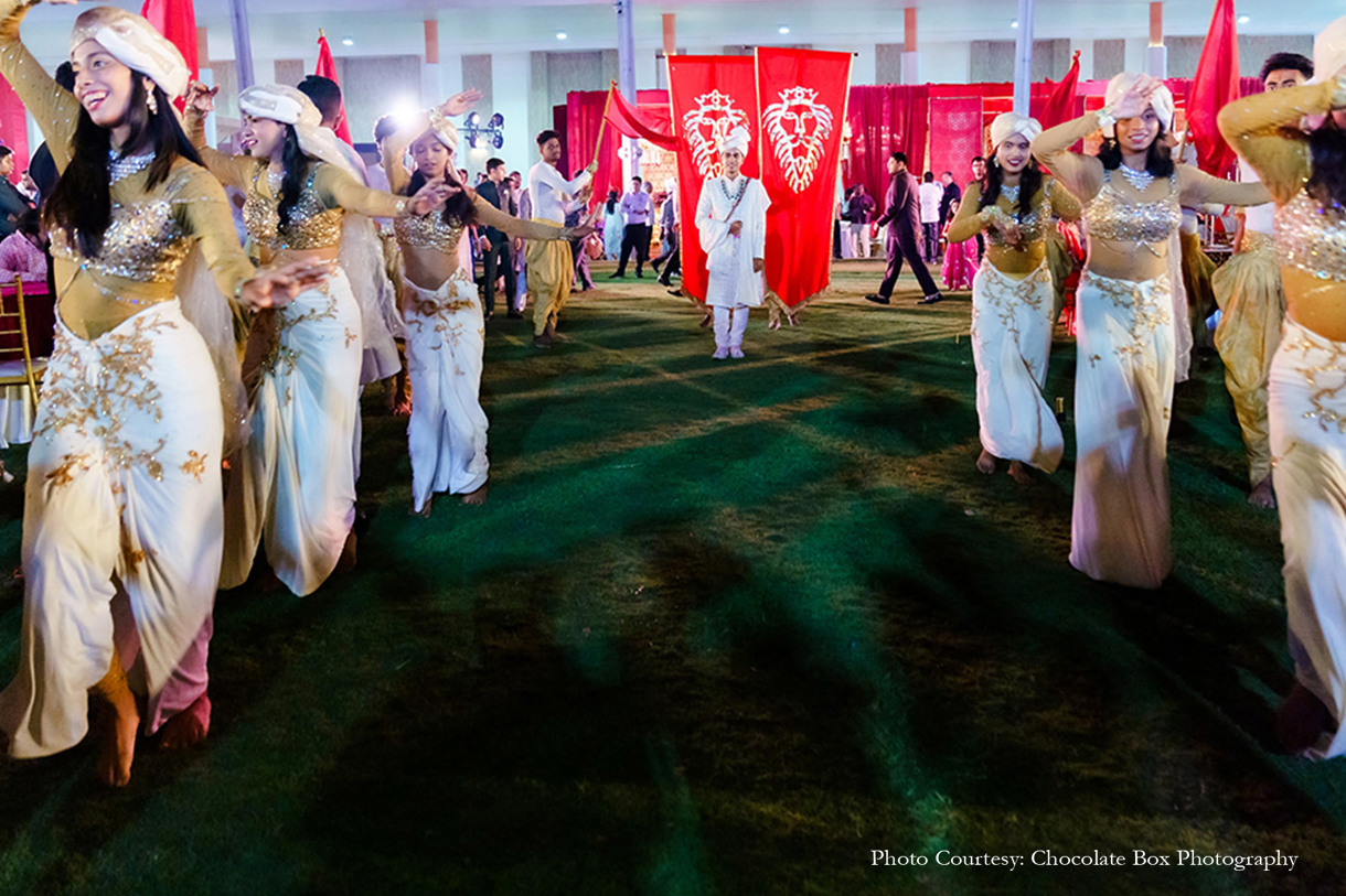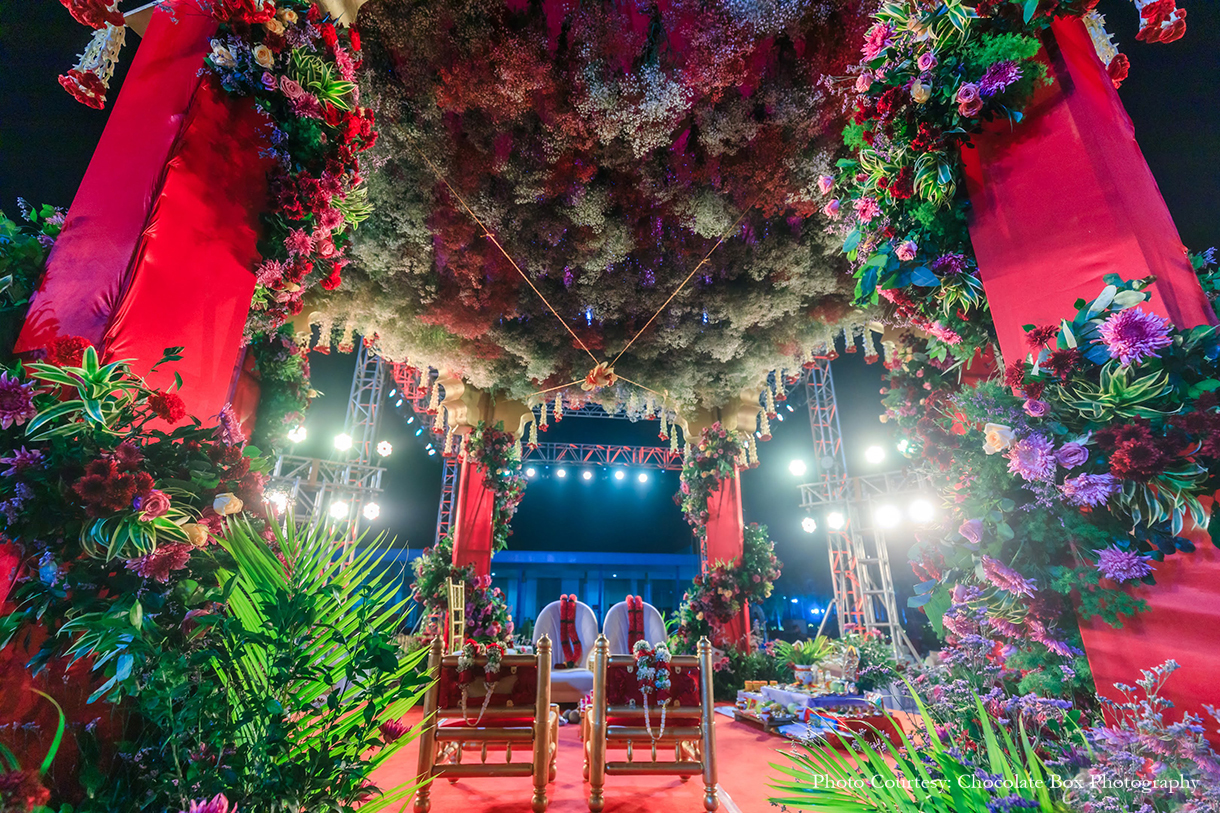 Leading the event design was The Escapade, whose keen sense for aesthetics came up with classic designs that glimmered with a touch of contemporary flair. Uddipta Banerjee from The Escapade shares, “The couple had a clear vision of their dream day, and with our help, the minute details of each event were discussed, materials procured and installations made, which was later implemented into a picturesque set with the help of our team.”