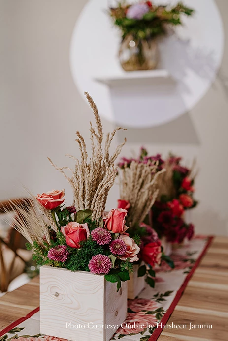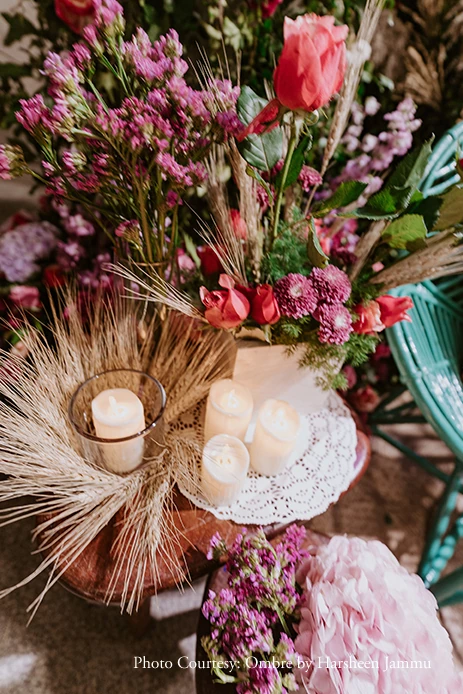 Beautiful moments should not slip us by, so to freeze every second of their special celebrations in flawless frames, the couple entrusted the talented team of Ombre by Harsheen Jammu. Adding to the remarkable collective of women entrepreneurs making up this wedding team were makeup artist Bianca Louzado, gifting labels Purkal Stree Shakti and The Earthy Studio.