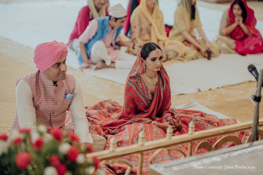 Priya adds, “We both decided on having an intimate wedding. We got married in a Gurdwara in GK1, Delhi, popularly known as the Pahari Wala Gurdwara. We were blessed by the presence of our immediate family members and close friends.” The bride looked stunning in her red Anita Dongre ensemble that matched well with the groom’s red checkered jacket. Her hair was swept back into a neat bun,and her jewellery comprised a gorgeous diamond set with matching earrings and a maang tikka.