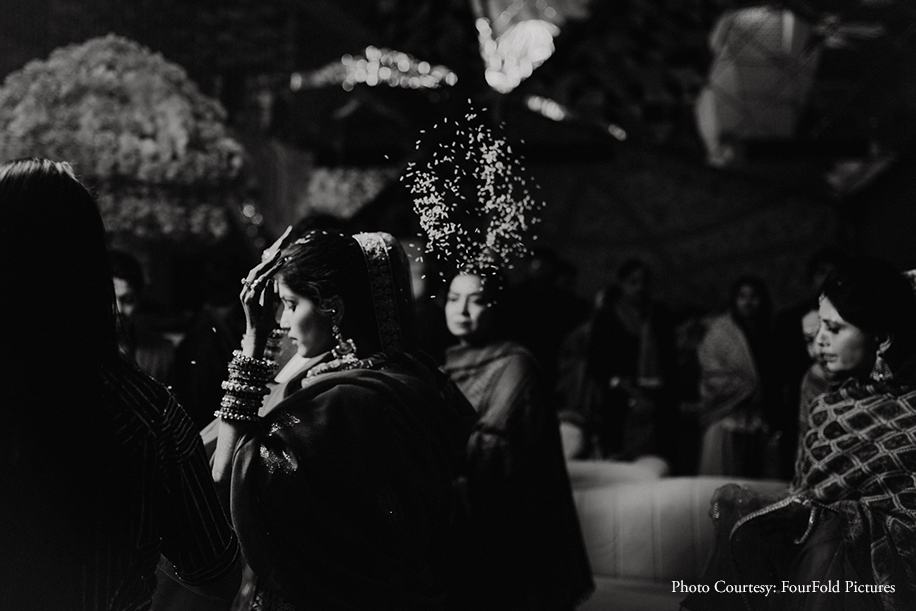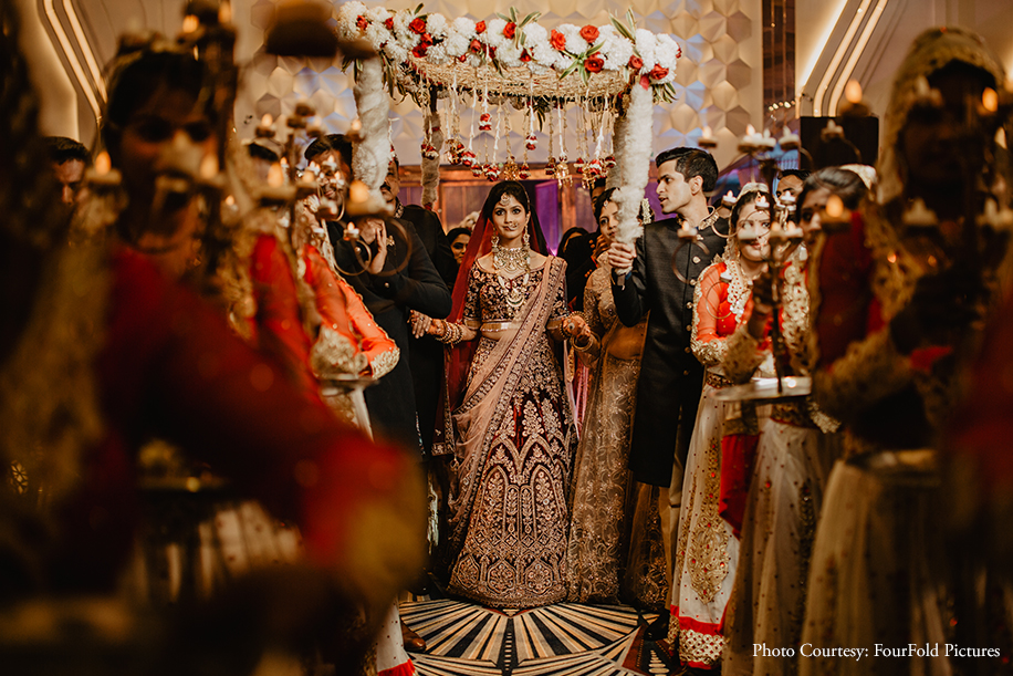 That surreal moment timely captured by FourFold Pictures when the bride walked down the aisle under phoolon ki chaadar.