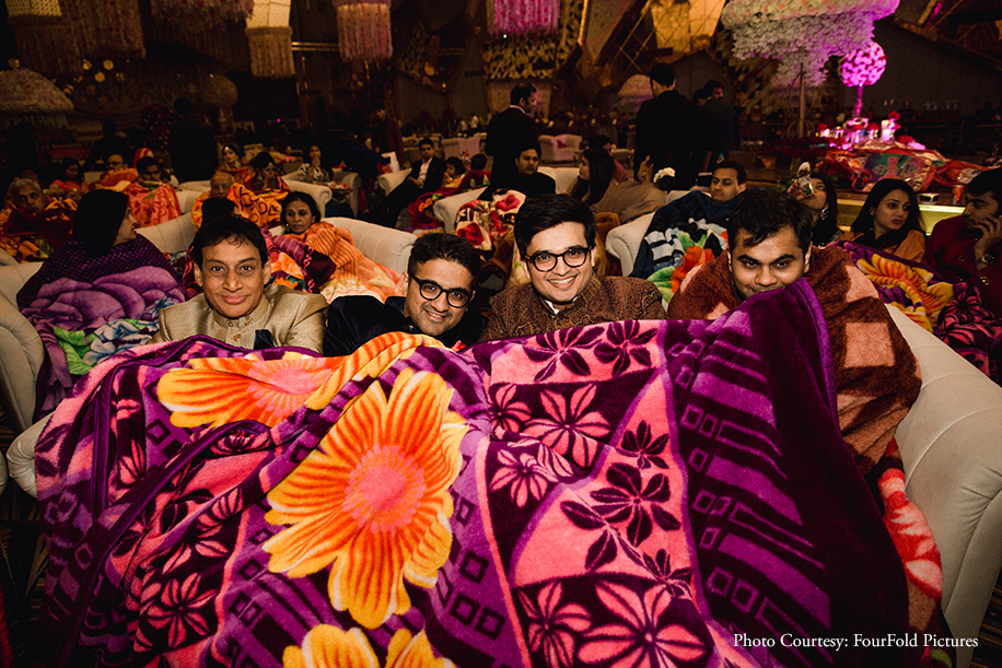 While the guests cosied up in blankets to witness the beautiful union.