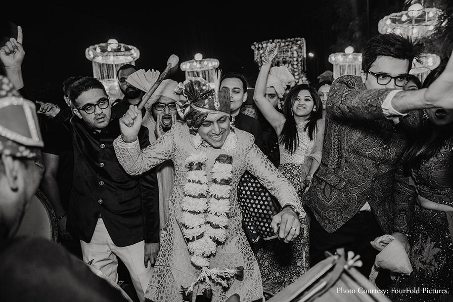 The baraat entered with a band, baaja, and a whole lot of dancing.