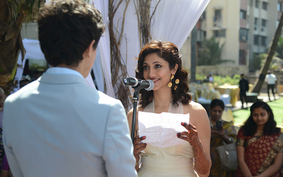 “I always imagined a very small wedding ceremony in the Himalayas but since it was quite inconvenient for my guests to travel, we settled on hosting both our weddings in Mumbai. I wanted an outdoor setting and thought that the seaside area at the Novotel Hotel would be perfect.”