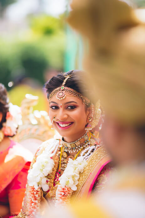 Priyanka MC and Kartik Raja’s families have been friends for two decades but the two first met at a cousin’s wedding. Cupid aimed its dart well and the couple tied the knot at their beautiful wedding in Bengaluru. The celebrations were planned by WeddingSutra Favorite Poonam Mayank Sharma. Here, bride Priyanka shares her love story and highlights from the festivities.