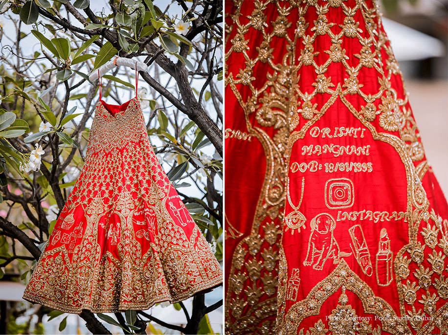 Bride’s Outfits: Papa Don’t Preach (Mehndi), Jay Makhija (Sangeet, Wedding, After Party, Pool Party and Bollywood Party)