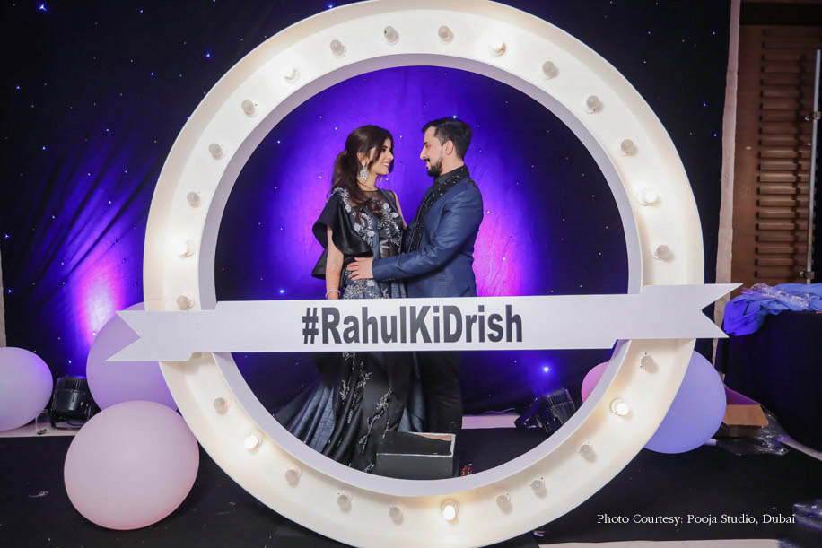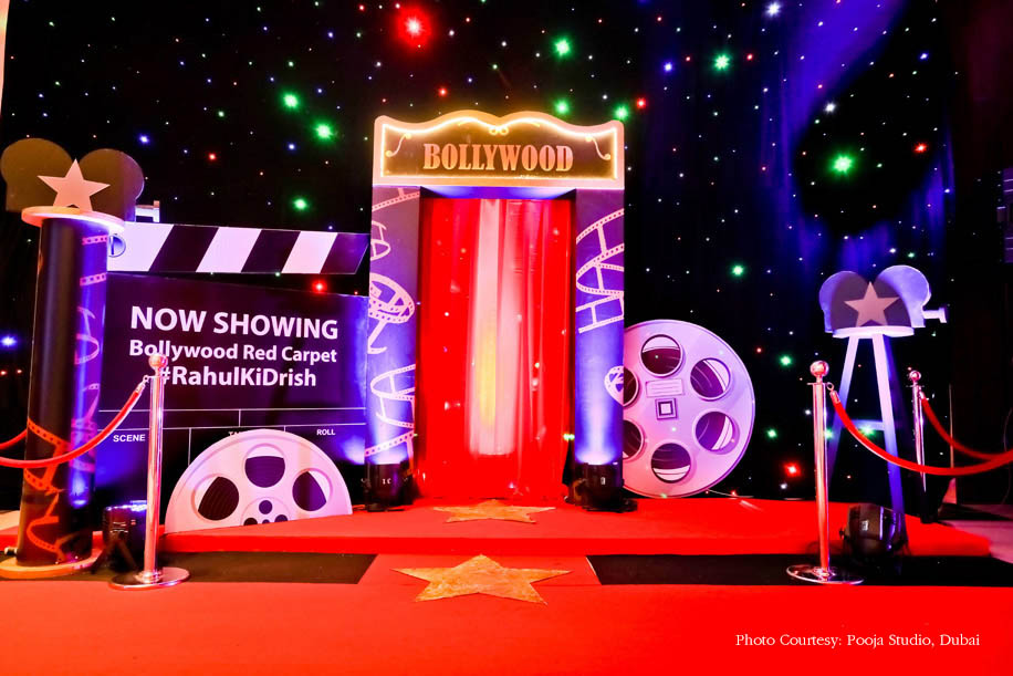 “We’d planned a Bollywood red carpet vibe for this event. We personally planned the décor, flashing cameras on the film clappers, a red carpet and a photo booth. Rahul and I dressed up as royals inspired from the movie ‘Padmavat’. Our guests dressed up as their very own favorite actors and actresses. We had games according to the attire and looks of the guests. It was amazing!”
