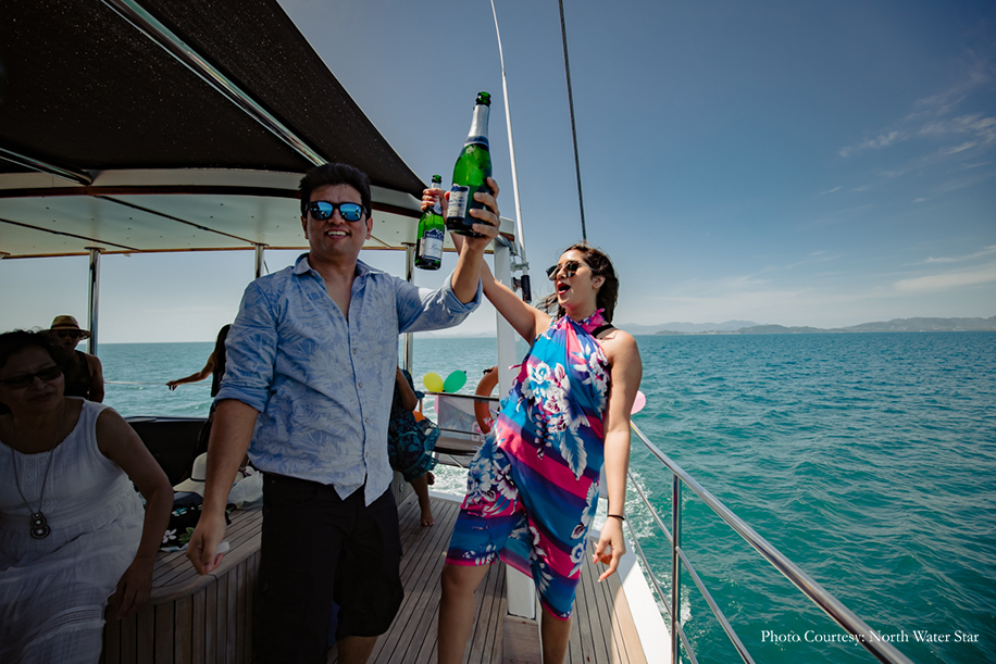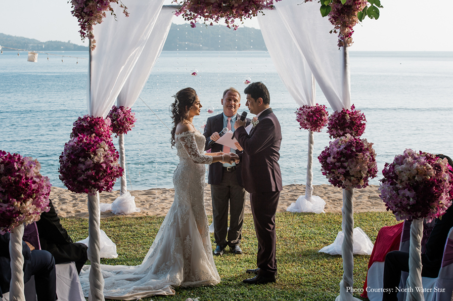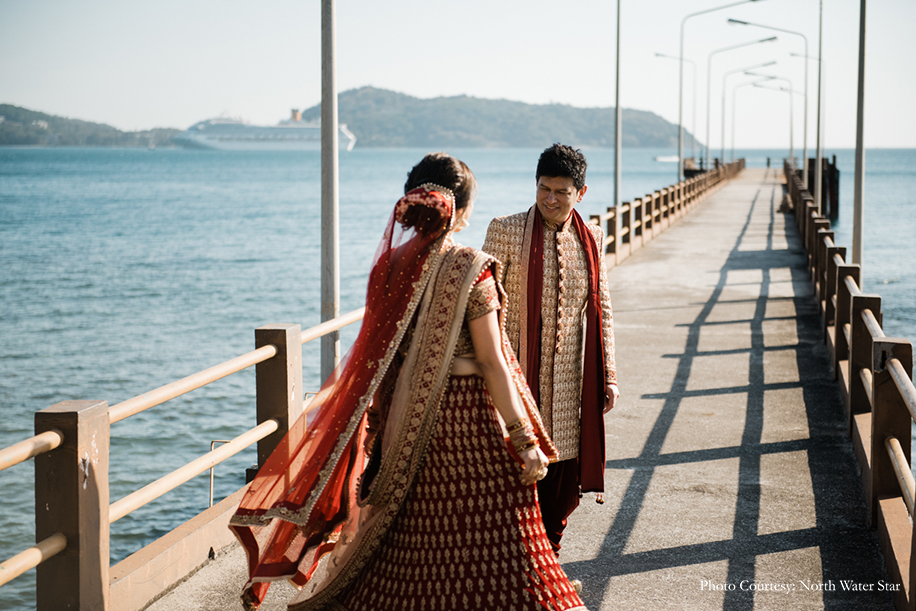 Airline professionals Rahul and Vinita fell in love 30,000 feet above the ground. They aptly planned a destination wedding, tying the knot in Thailand with close family and friends present. Precious moments from the wedding were captured by WeddingSutra Favorite – North Water Star. Here are a few glimpses of the celebrations.