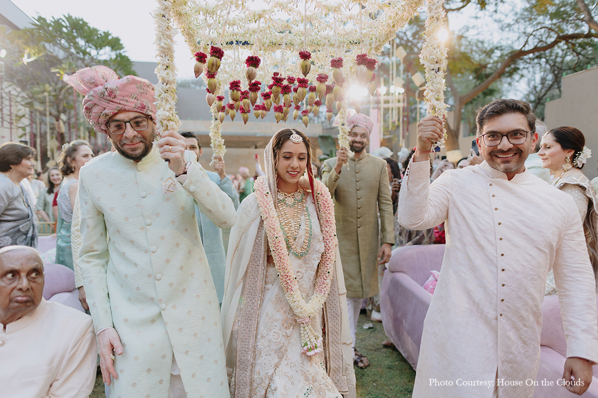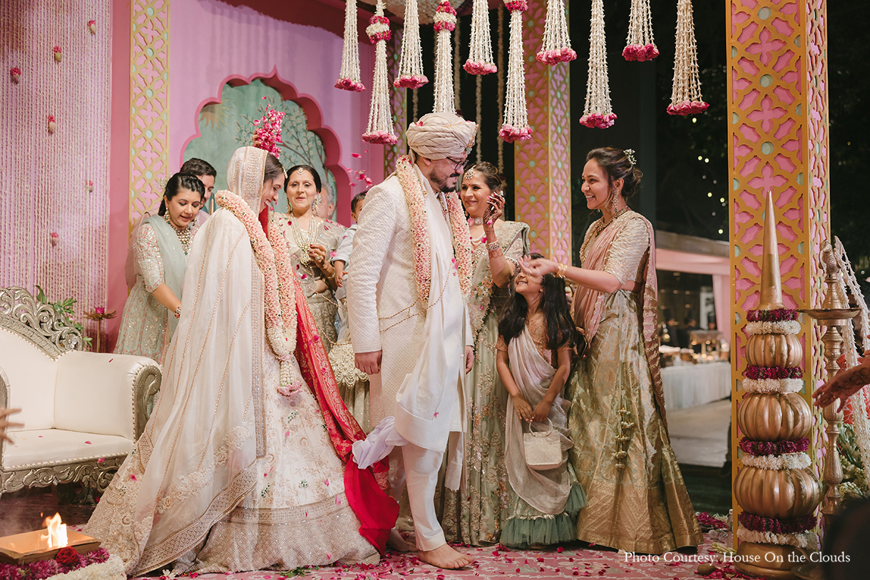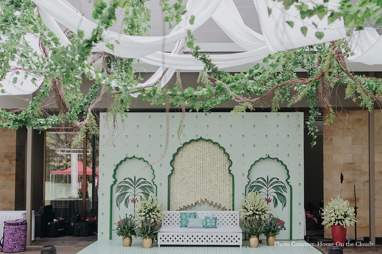 The couple envisioned the culmination of their families and cultures in an intimate backyard wedding full of personal details and tender moments of love. While most of their functions were held at the bride’s home, their haldi and Sangeet were hosted at The Ritz-Carlton Pune. The team of Kkings Events was entrusted to plan out every detail, while the team of Design HQ breathed life into the decor concepts for each occasion. The award-winning photography team of House on the Clouds froze their special moments in shots of candid beauty.