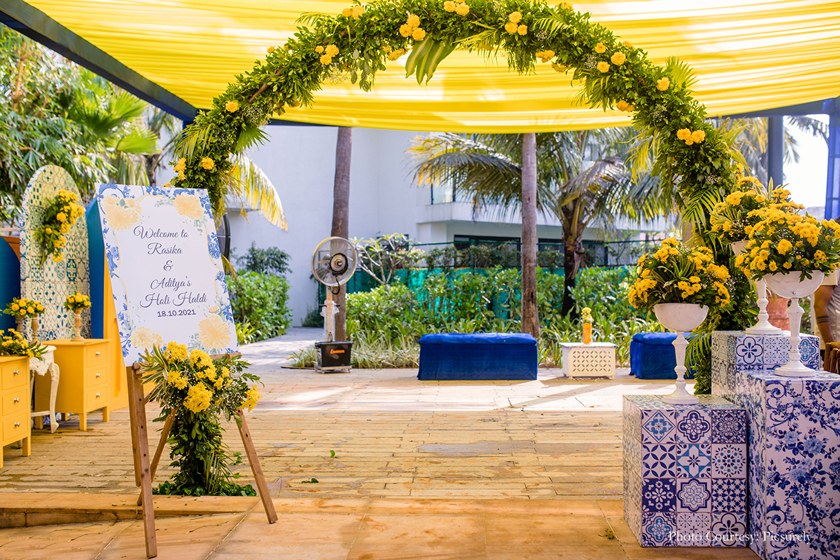 Rasika and Aditya envisioned elegant and aesthetic decor for their dream beach wedding and entrusted the team of The Wedding Ties to bring it to life. From the lively colorful haldi to the enchanting acrylic mandap with intricate floral arrangements, every detail was crafted with creativity and precision to frame their special moments.