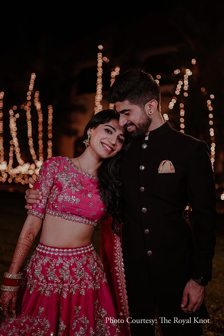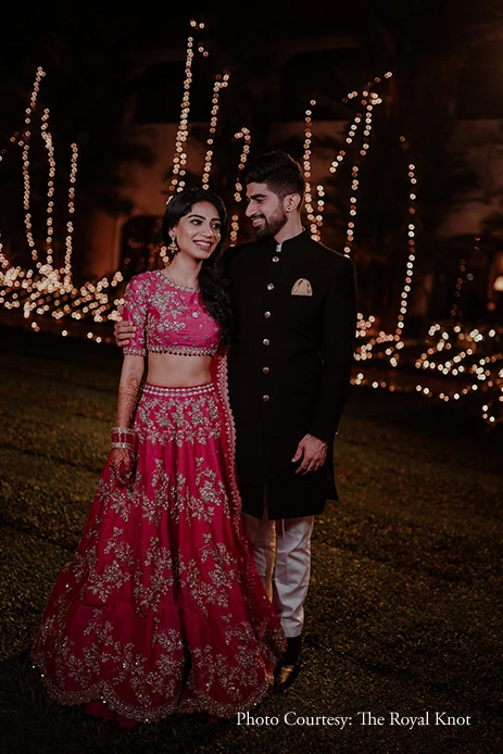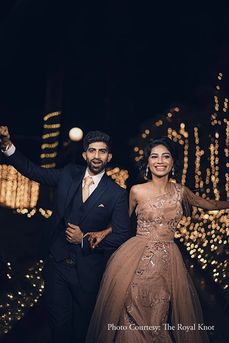 Stepping up the glamor quotient, the cocktail night was hosted under a dark, star-studded sky where the duo danced to their favorite tracks along with their loved ones. Peppered with golden fairy lights that twinkled merrily and swayed in the wind, it was an enchanting affair that was followed by a lip-smacking feast where everyone reached for second helpings. However, the highlight of the evening was a montage of surprise video wishes by friends who couldn’t make it to the wedding that was played on a big screen especially for the couple.