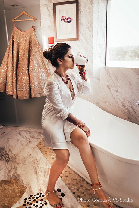 Bride’s Outfits: Dabka Dori (Mehndi), Amit Aggarwal (Shaolin Night), Faabiiana (Bhaat), Payal and Zinal (Beach Party), Jade by MK (Sangeet), Sionaa (Pool Party), Sabyasachi Mukherjee (Wedding)