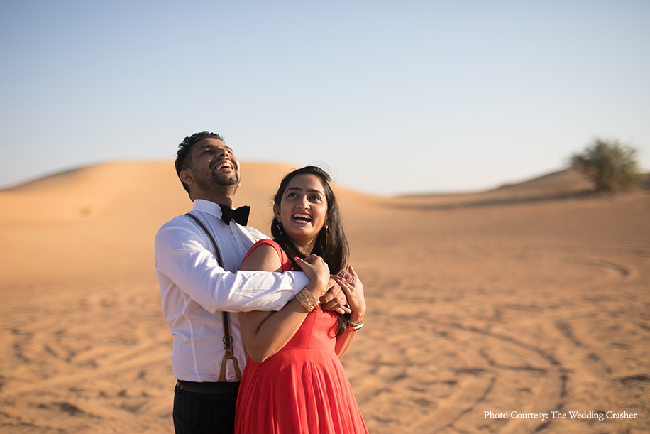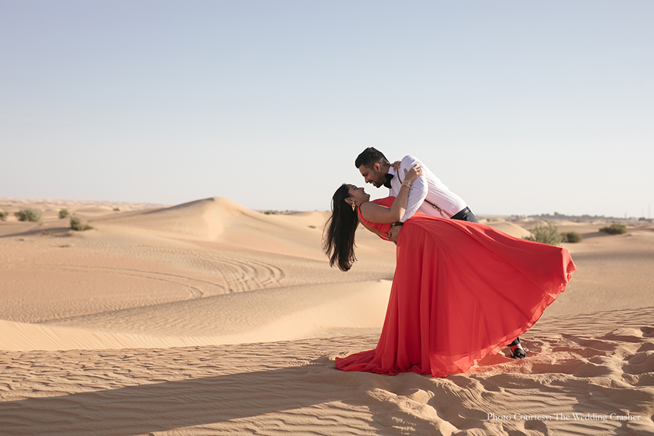 “Dhairya’s proposal panned out a little funnily. When we told our families about our relationship, they were super accepting of the choices that we had made. We decided to go to Dubai for our pre-wedding shoot and my sister, and her fiance also joined us. Dhairya was going to pop the question on a yacht. However, just a day before that, my brother-in-law who was unaware of Dhairya’s plans, asked my sister to marry him in the same way. Of course, Dhairya was unwilling to ask the big question just a day after in the manner he had intended to earlier. So he waited until the last day of our trip. That day we went to a beautiful pier on the beach, and that’s where he went down on one knee. It was beautiful. I had no idea about any of this, and was rather surprised when he asked me if I would be his wife!”