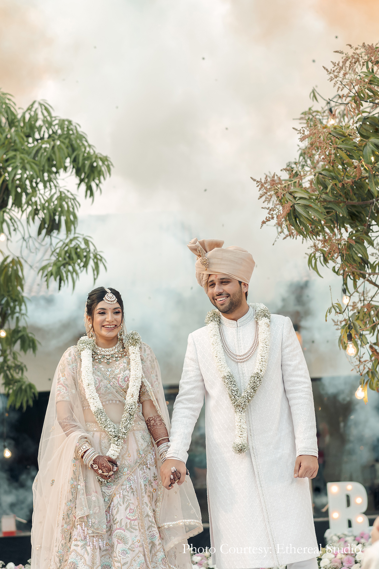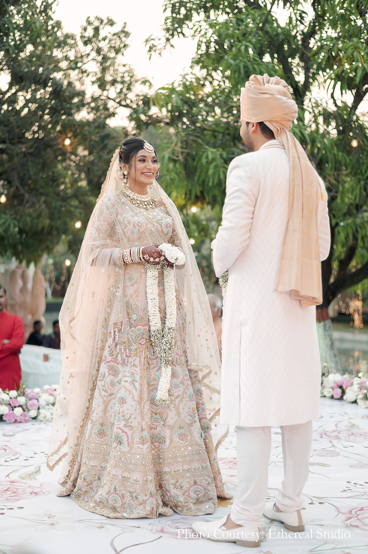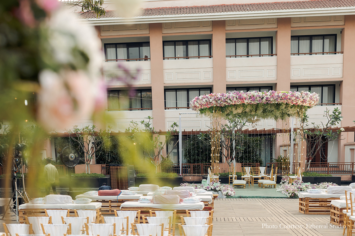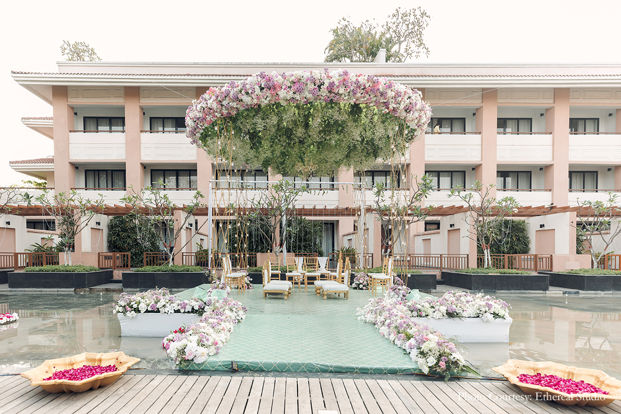 This couple’s floating wedding mandap with its pastel hues and suspended blooms looked like a fairytale come true!