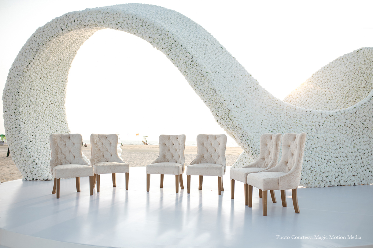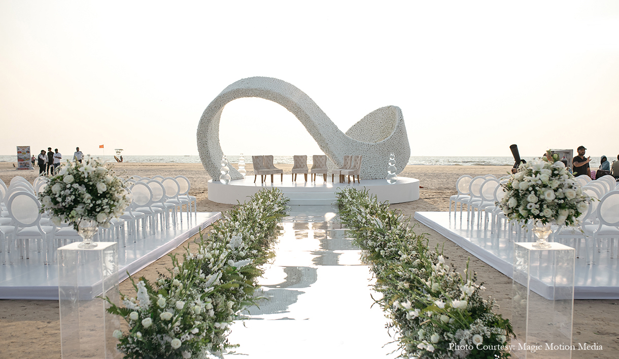 A continuous loop with no beginning or end, it perfectly mirrored the couple’s promise of undying togetherness. In this celebration, the Infinity Mandap became more than just a décor element; it represented a love as boundless and endless as the ocean behind it.