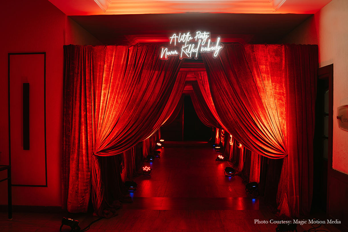 The Mehndi ceremony transformed into a wonderland of colors and creativity. Inspired by the fantastical world of Alice in Wonderland, the setup featured quirky seating, fun table centerpieces, and interactive games. The pool party turned up the energy with live performances by a saxophone and trumpet artist, while a glitter artist added a playful touch to the festivities.