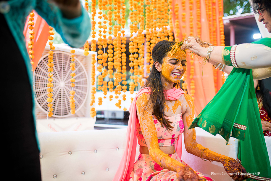 This was definitely the most fun function we had at our wedding. Our loved ones ensured they smeared haldi all over our limbs and faces and they had a blast doing that! This extended into an easy afternoon of dancing and hanging around enjoying everyone’s company.
