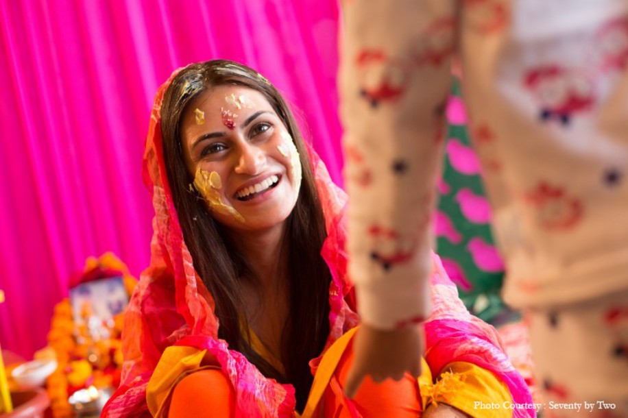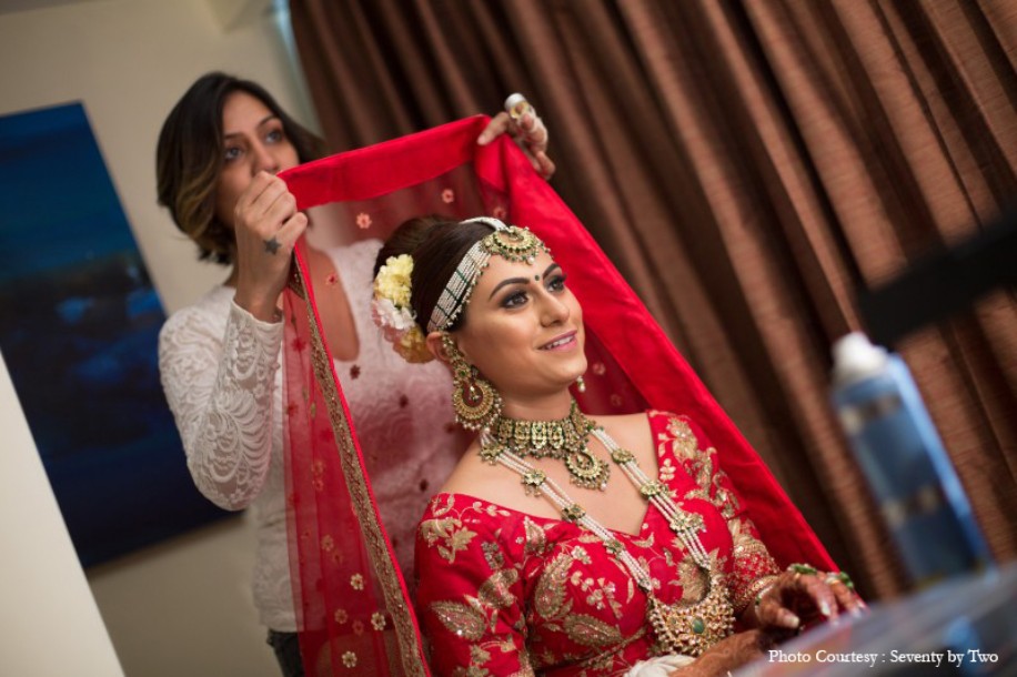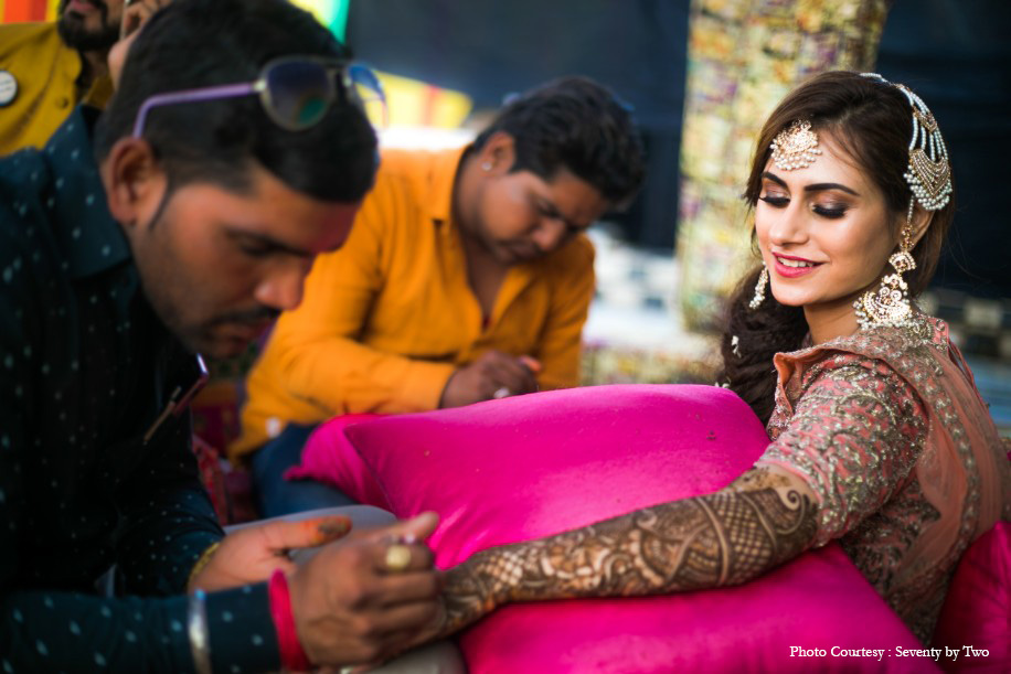 Brides Outfits: Jayanti Reddy (Mehndi), Payal Keyal (Sangeet), Gaurav Gupta (Reception)