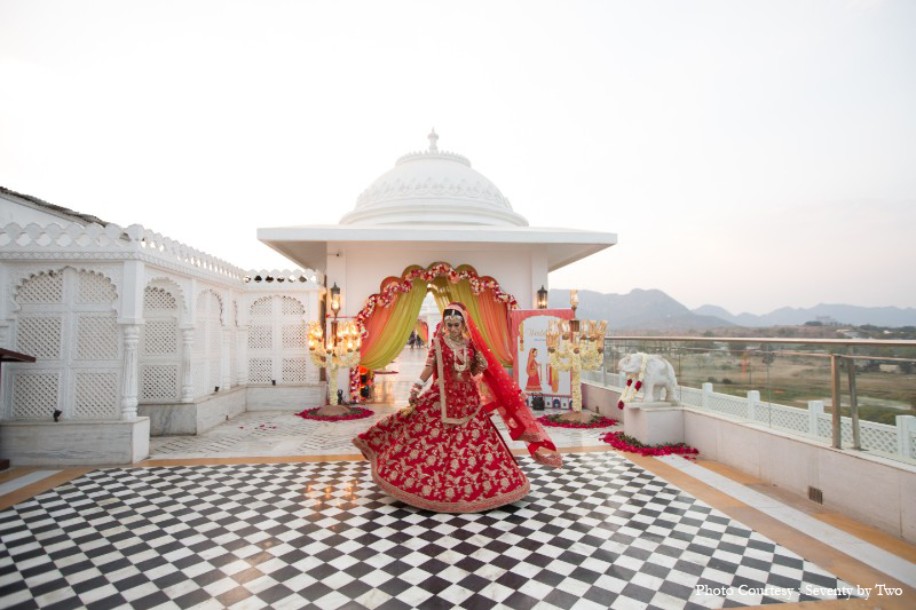 Kushal’s mum believes that unions by a water body are particularly auspicious and that is why The Doli Diary recommended Udaipur, the city of lakes. With the couple busy working, it was up to their respective parents to finalize the venue keeping in mind that Kushal had always wanted a royal wedding and Richa wanted a gorgeous view. The Radisson Blu ticked all the boxes and the couple was married in a rooftop mandap overlooking the Fatehpur Sagar Lake.