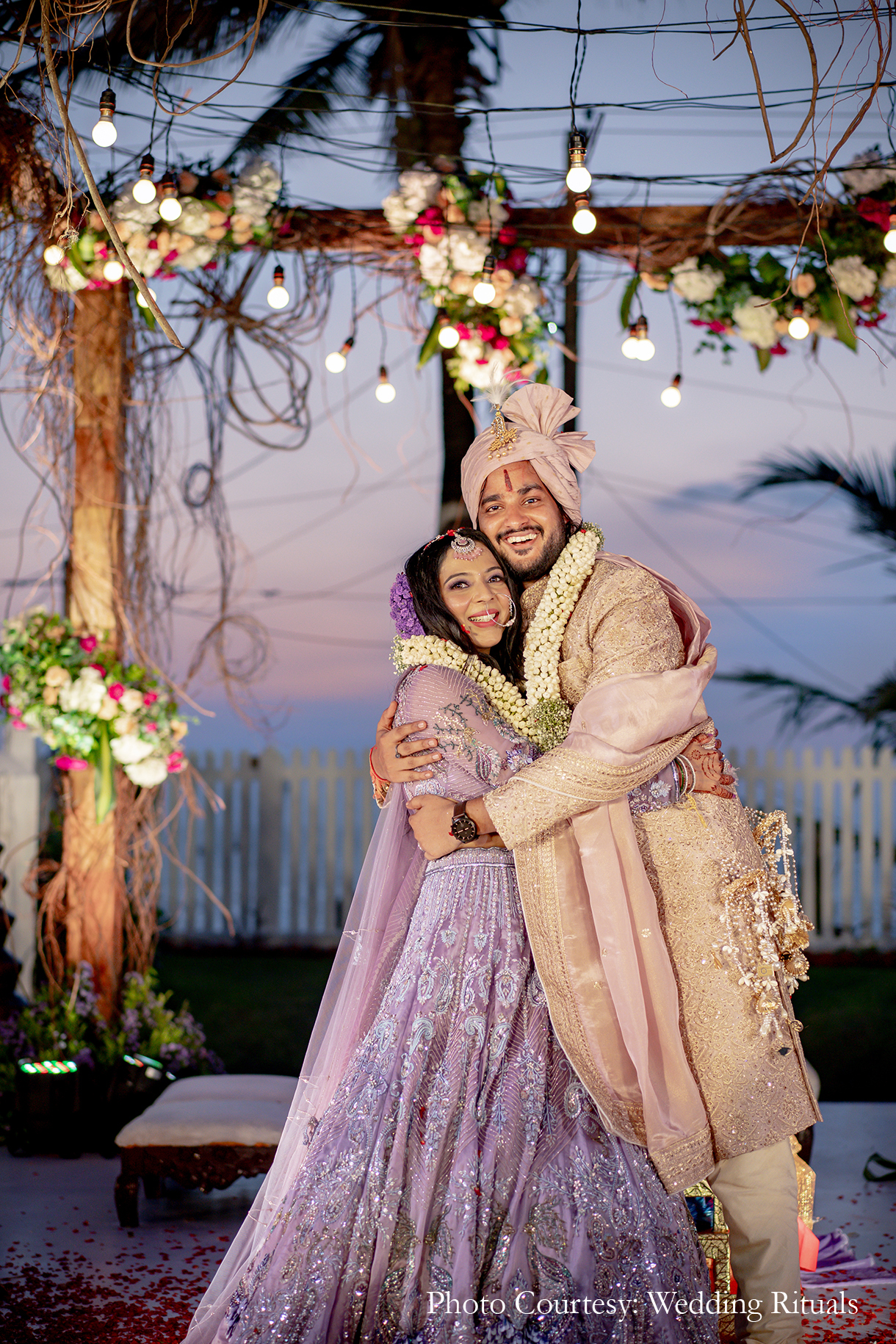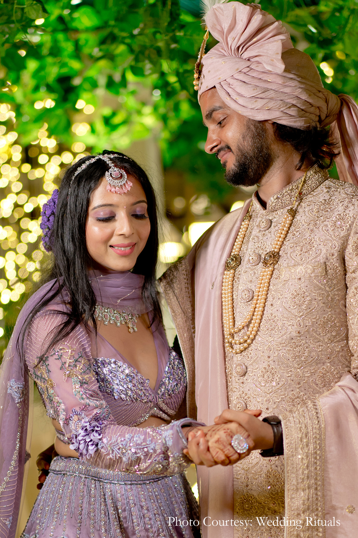 “Our wedding day was simply magical. We chose a soft lavender palette, keeping the decor minimal yet elegant. The real showstopper was our mandap—we designed it with tree vines, blending it seamlessly with the natural beauty of the outdoor setting. It was breathtaking, a moment that felt like stepping into a fairy tale. The setting sun, the soft breeze, and the love we felt around us—it was everything we could have hoped for and more”, the couple happily recollects.