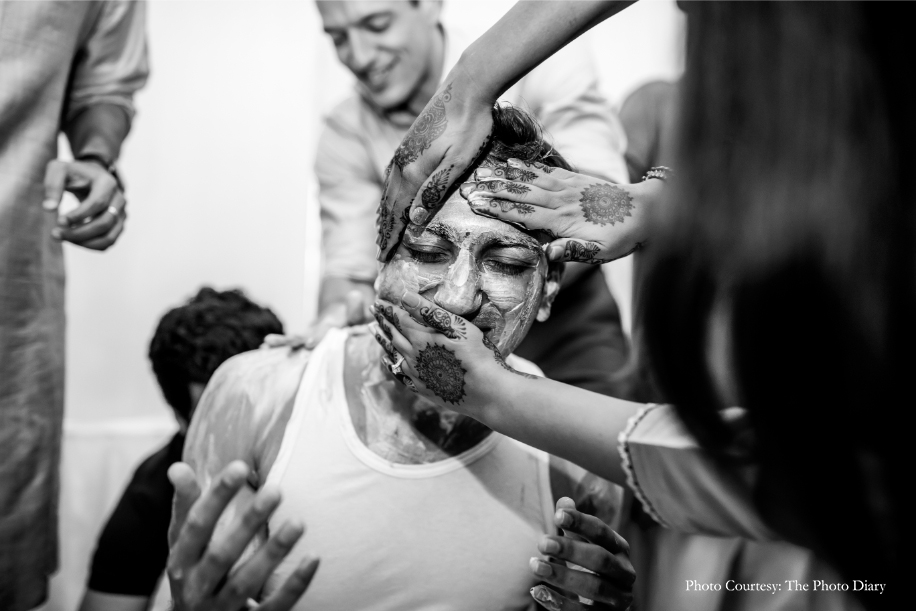 Ruchi and Amay's Mumbai wedding included a haldi ceremony where the groom was doused in sauce and curry!