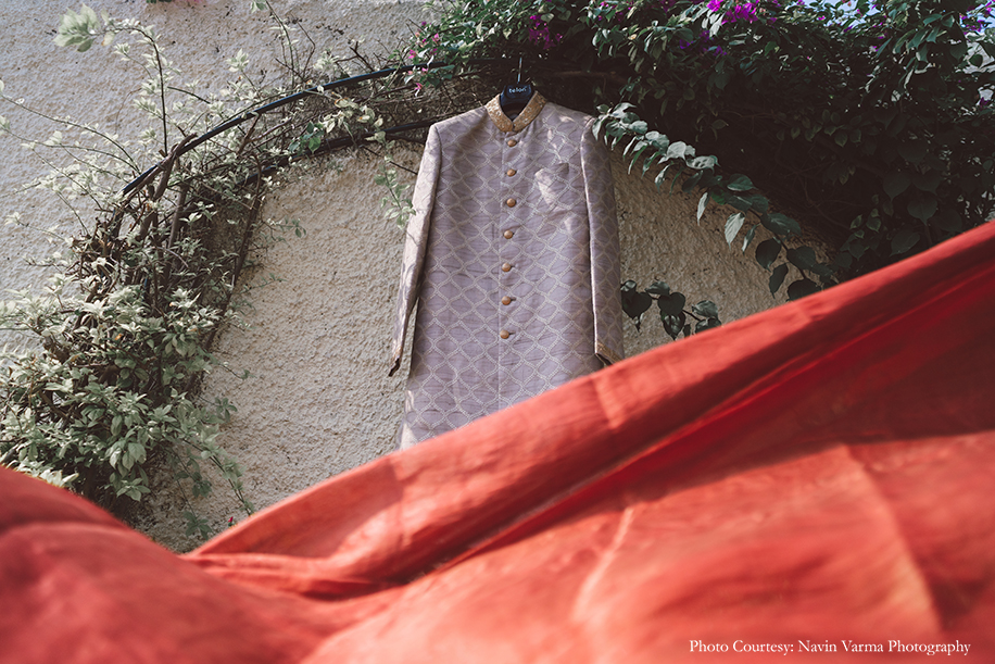 The bride, being a graphic designer, coordinated all the decor details and color schemes. Sahil from Fleuron instantly connected with the brief and delivered a fabulous job. He planned the look around a red, gold, and white color palette with a hint of magenta. Every detail was coordinated with the outfits of family members and the decor. The vineyard style chairs, mood lighting, tents, benches and wooden centerpieces with twigs made everything look charming. Saachi shared, “Navin Varma was the best man to capture the moments of all the events with his artistic views. He, along with his team, captured every mood and every emotion perfectly. The team always adhered to all our requests and demands, and were extremely punctual.”