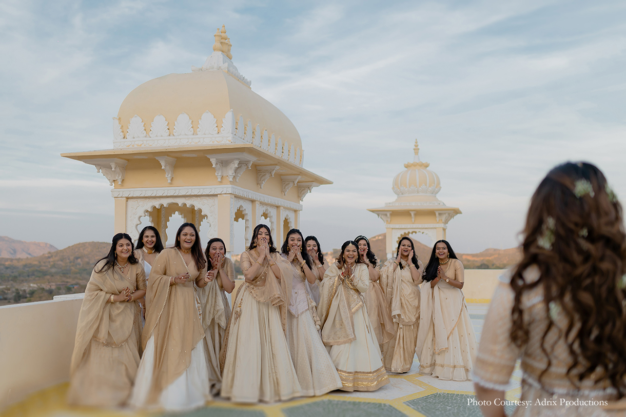Sachi and Namit met on a matrimonial site in 2022, and despite being polar opposites, they perfectly complemented each other, like yin and yang. While Namit had envisioned a small court wedding or a spontaneous celebration in Vegas with just 10-15 close friends and family, he knew how much it meant to Sachi to have a grand destination wedding with all her loved ones. This was the beginning of a magical celebration in Udaipur, where the duo tied the knot in a dreamy wedding full of love and laughter.
