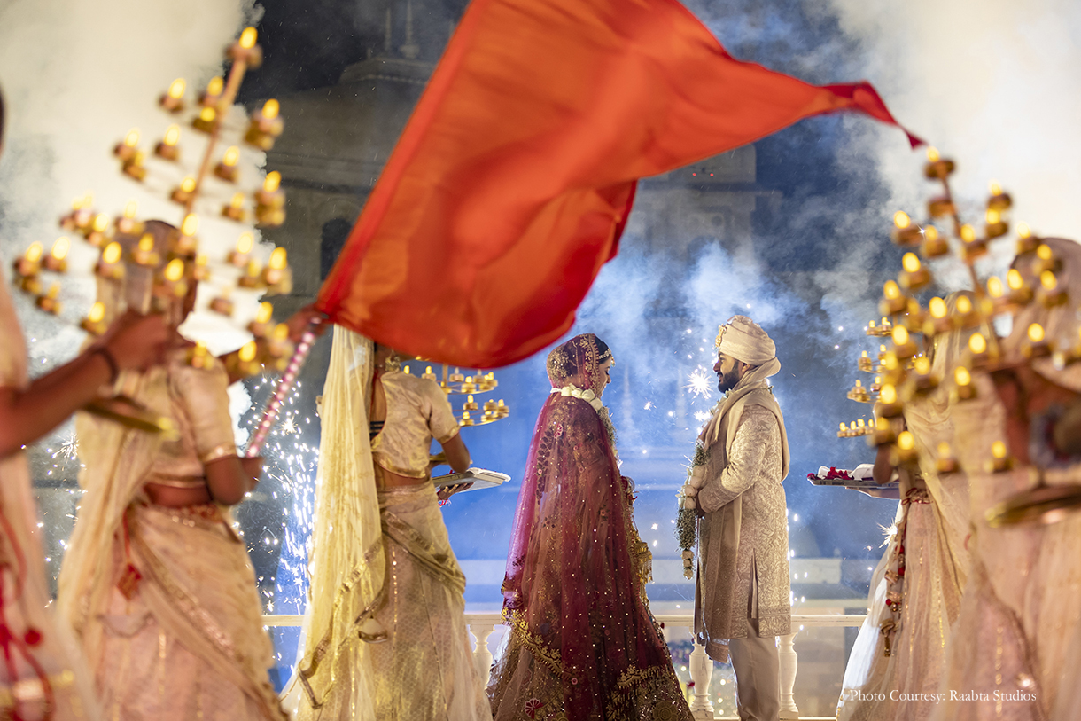 Fashion Designer Sadgi Agarwal wed Restrauntier Sagar Nagpal in a celebration filled with spectacle, portrayed against the heritage splendor of Jaipur. Planned and executed to perfection by WeddingSutra Favorite – Weddings by Event Crafter , every moment of their royal destination wedding was immortalized in golden frames by WeddingSutra Favorite – Raabta Studios.