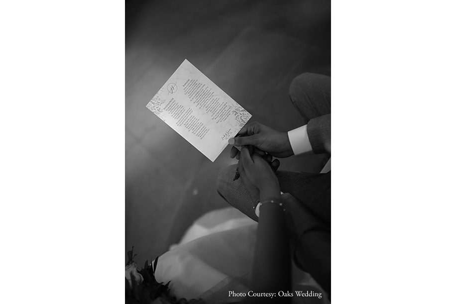 “We started planning our wedding, but since our cultures were different, our parents discussed ways to conduct the wedding rituals. After brainstorming for a couple of days, we decided on having an intimate wedding with both our cultures intertwined together to make for a beautiful and eventful celebration. We decided to celebrate the sangeet the Kerala way, the wedding in European style and the reception with Tamil traditions. We meticulously chose all our vendors and made sure that we were on the same boat with the planning. First, we signed on Oaks Wedding to capture our three-day celebrations and then we booked The Hue Story as our wedding planner”, shared Saira.